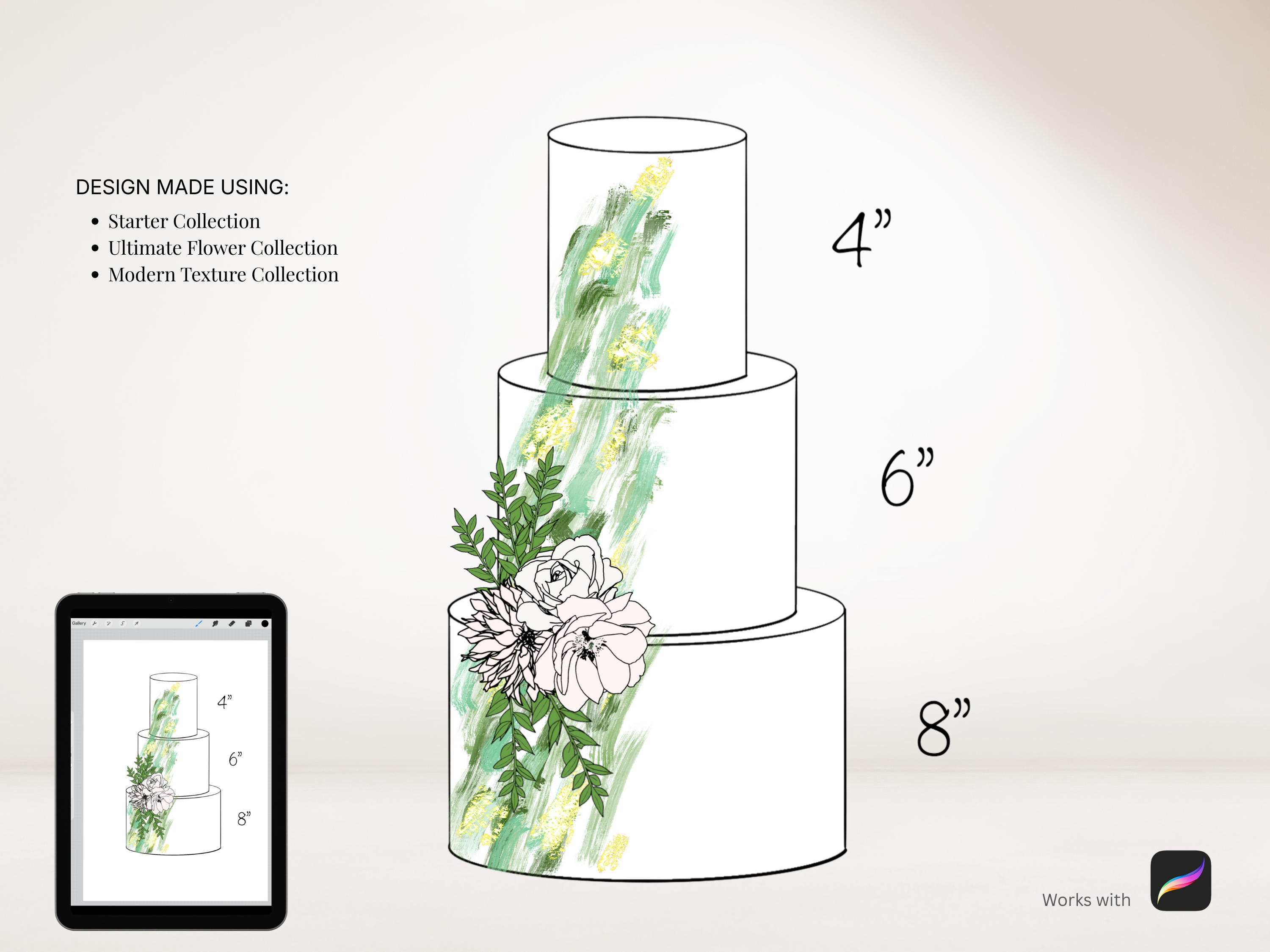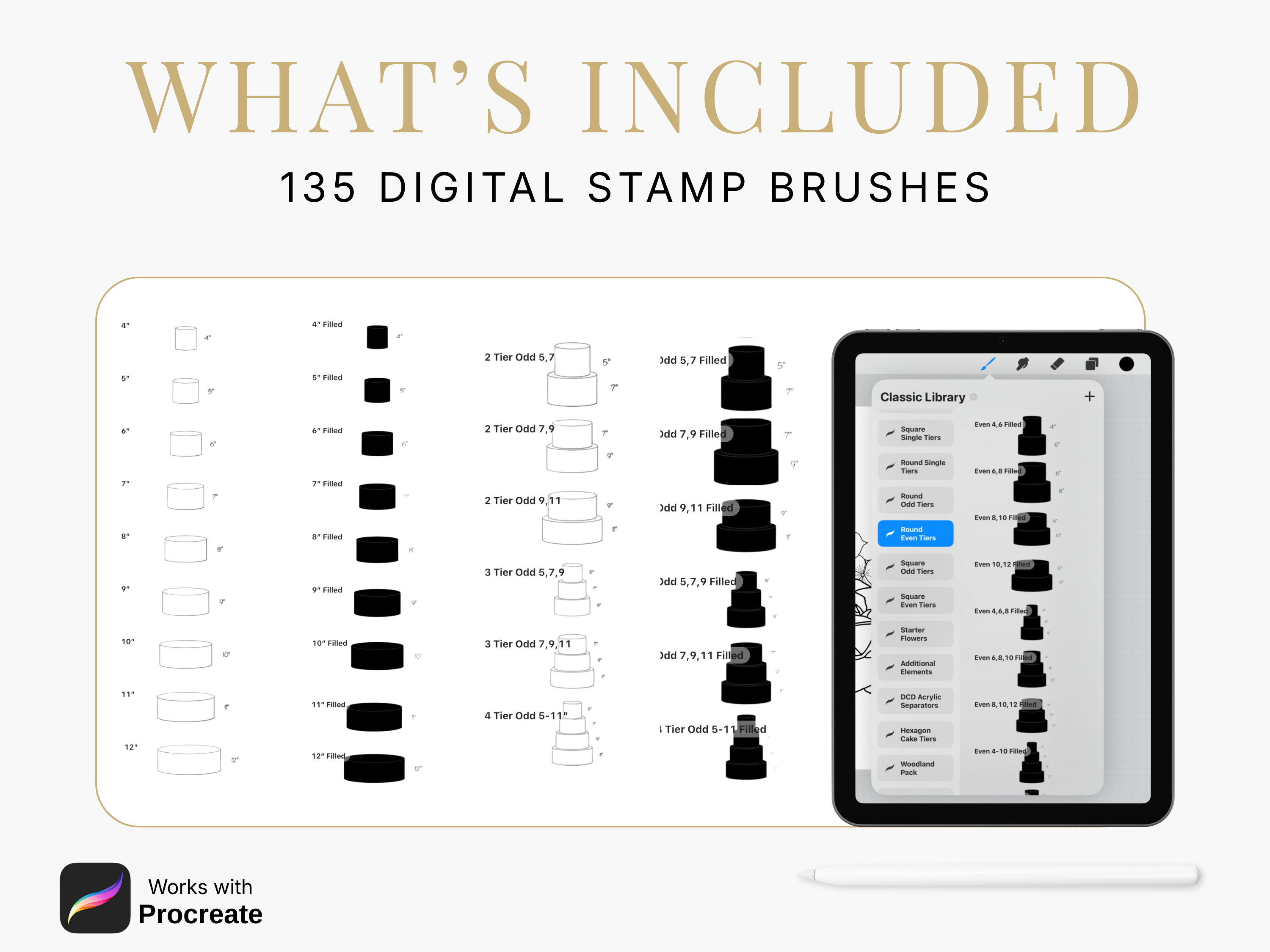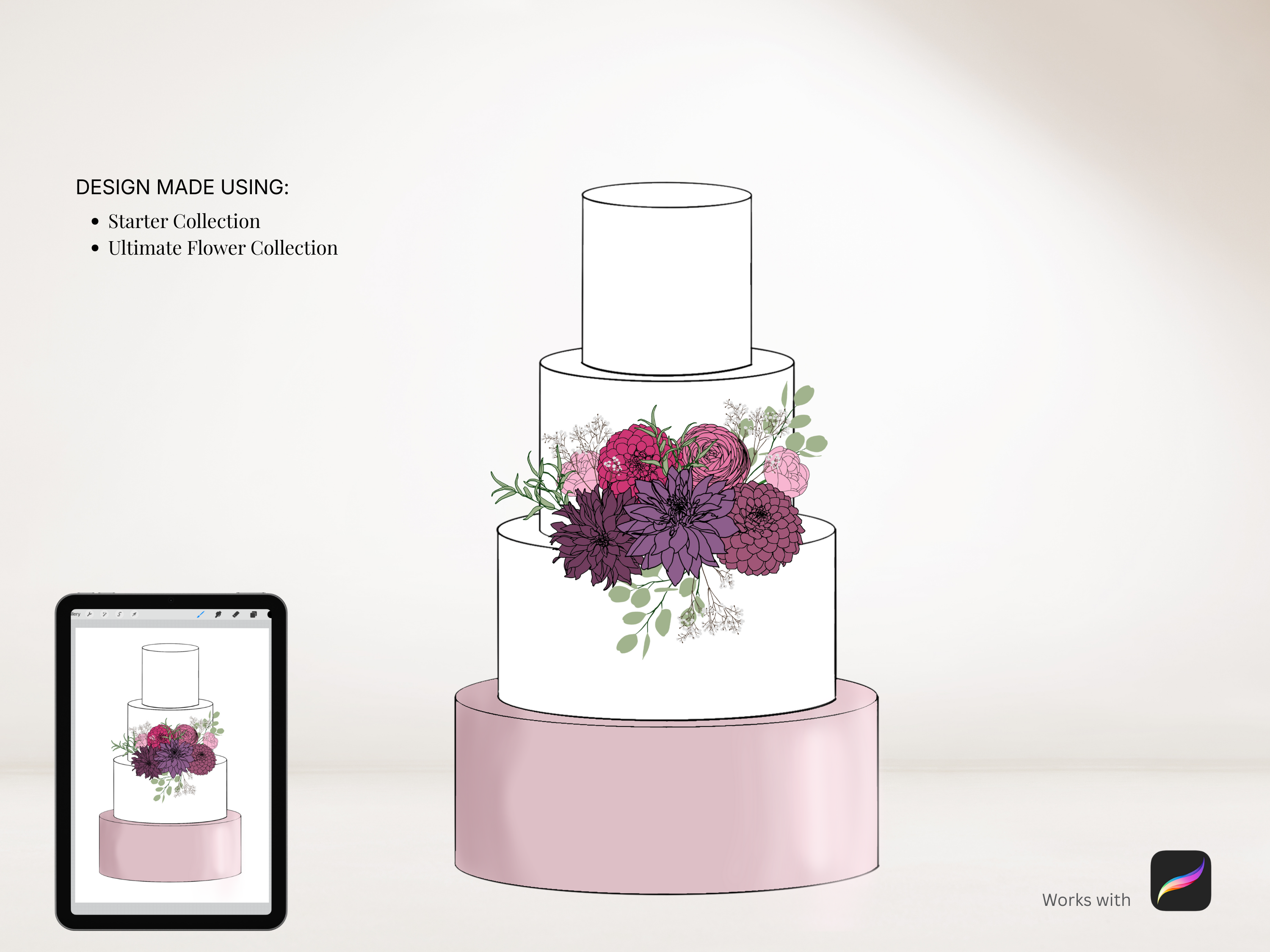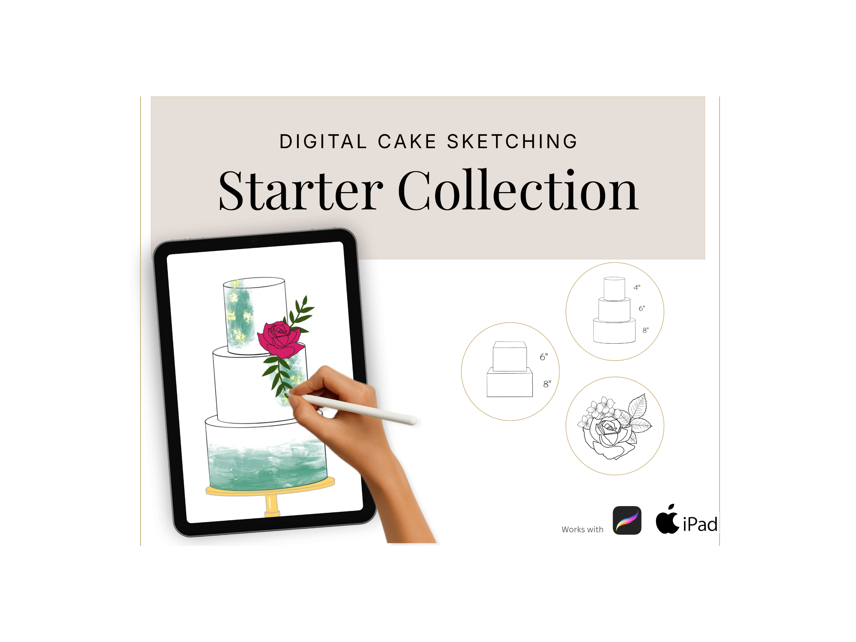 The perfect way to sketch your cake designs. Use these stamps with the Procreate App (available on iPhone and iPad) to design beautiful cakes for your customers.