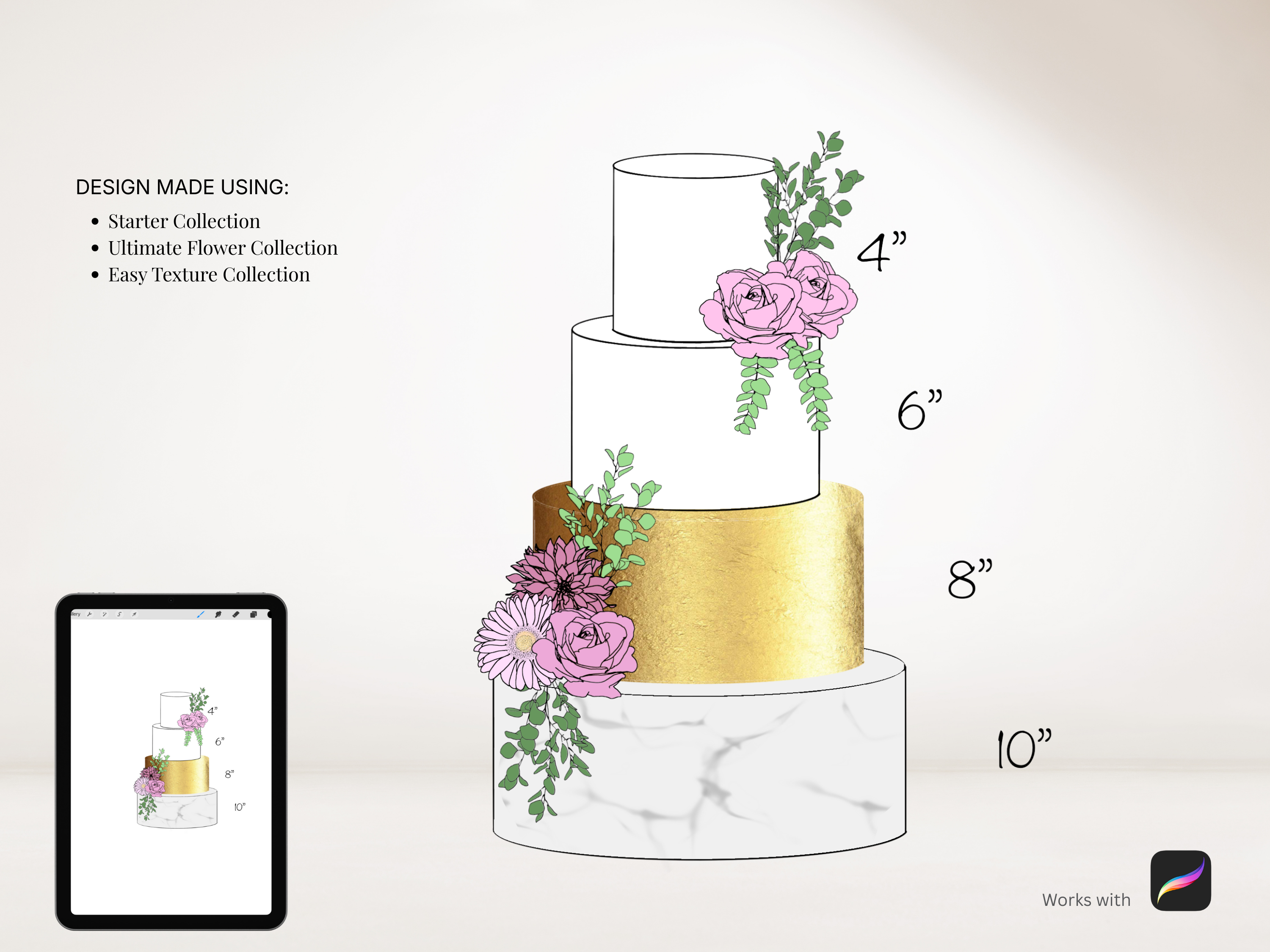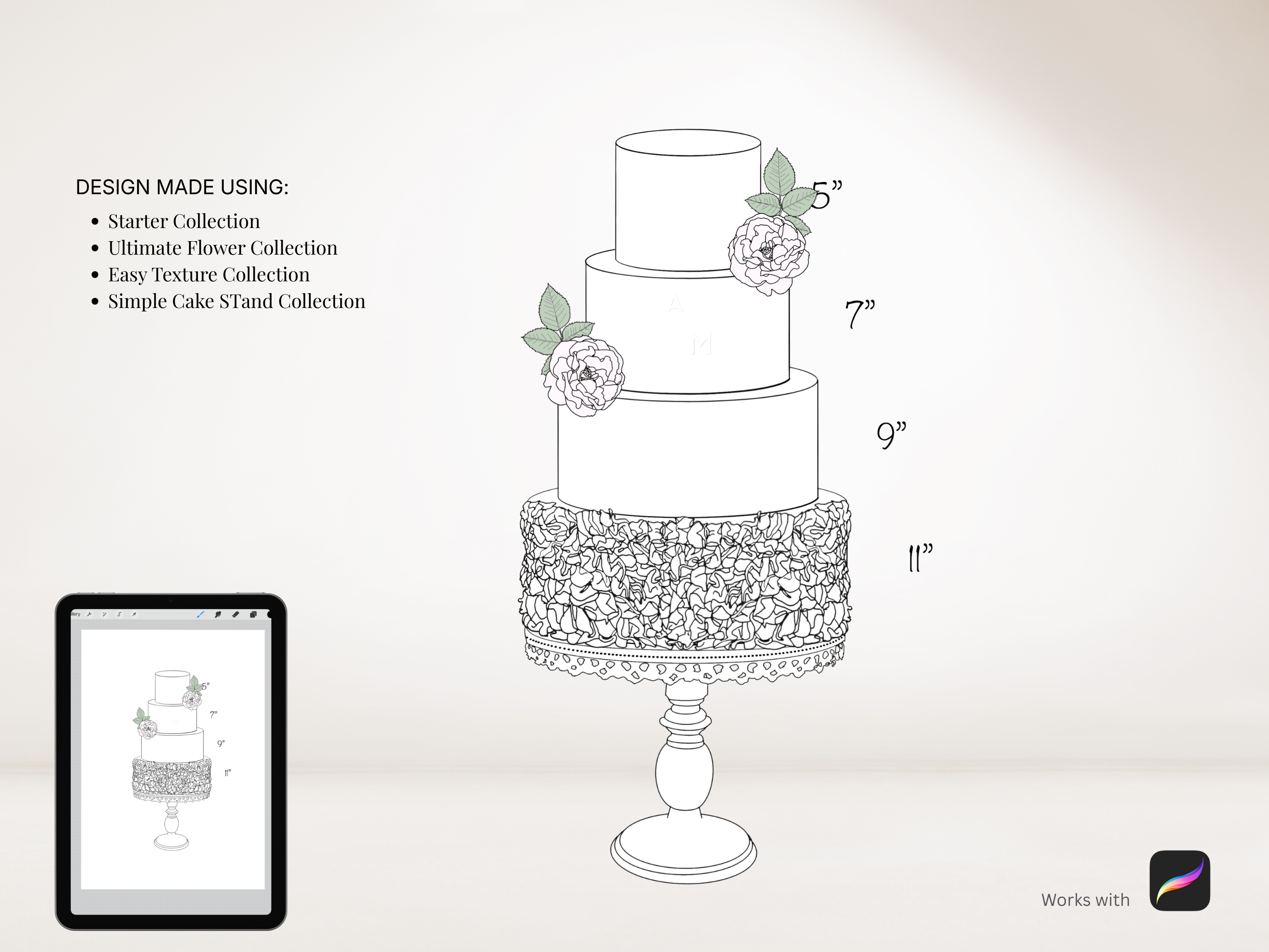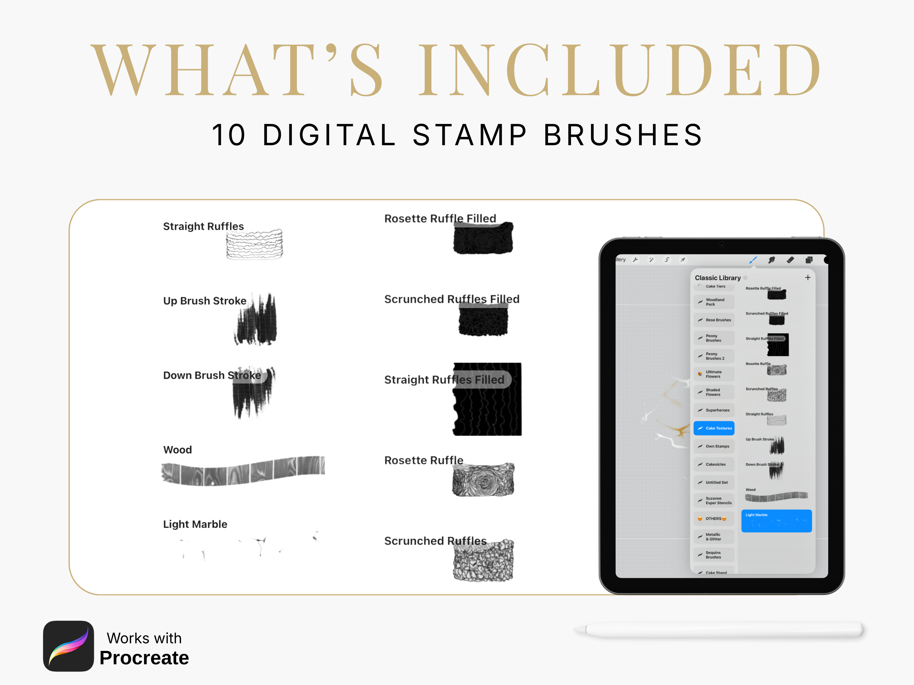 Cake Texture Procreate Stamps: Ruffles, Marble, Wood