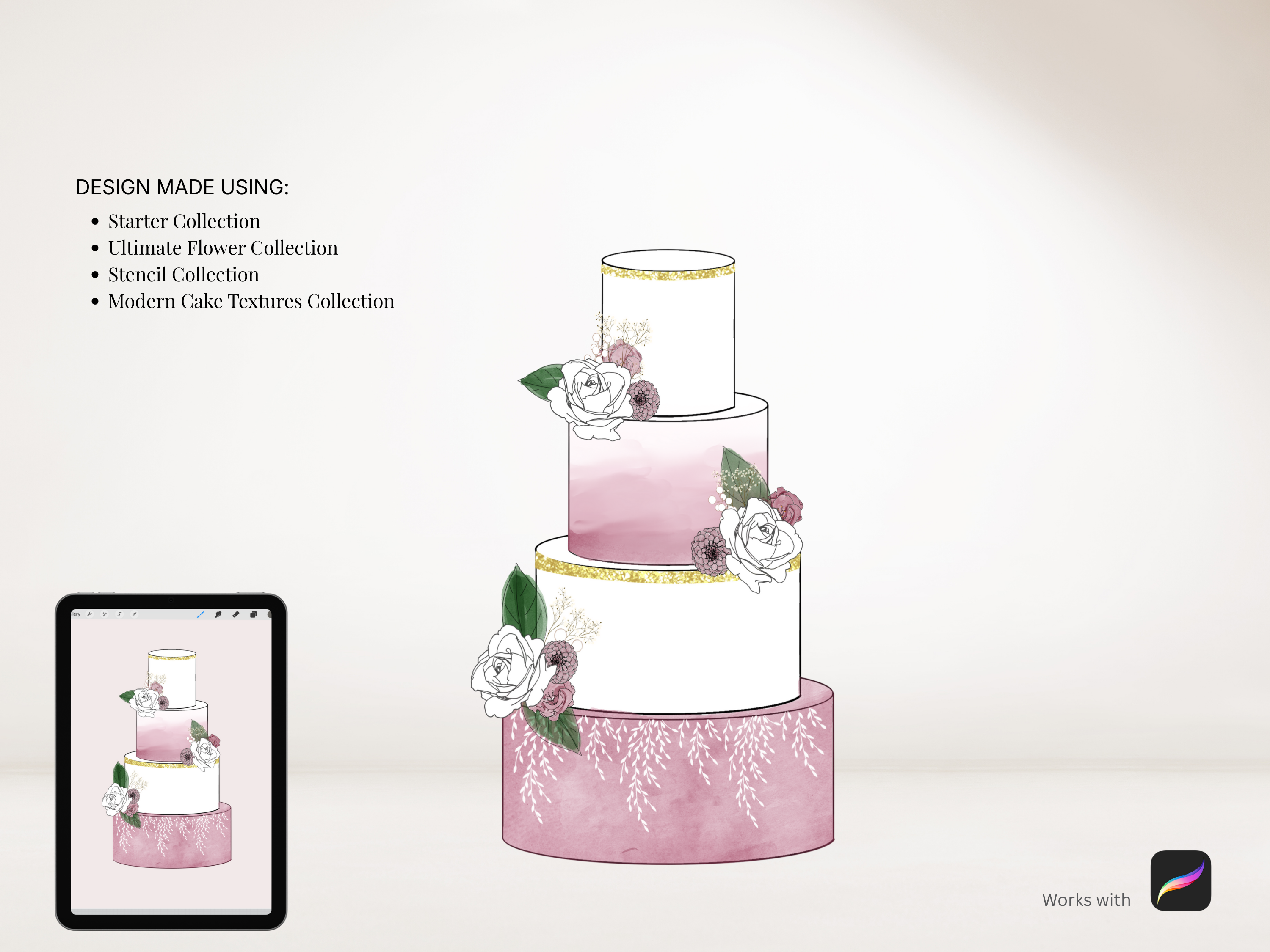 These flower procreate stamps are easy to use on your cake designs. And they really do give such a beautiful look to your designs.