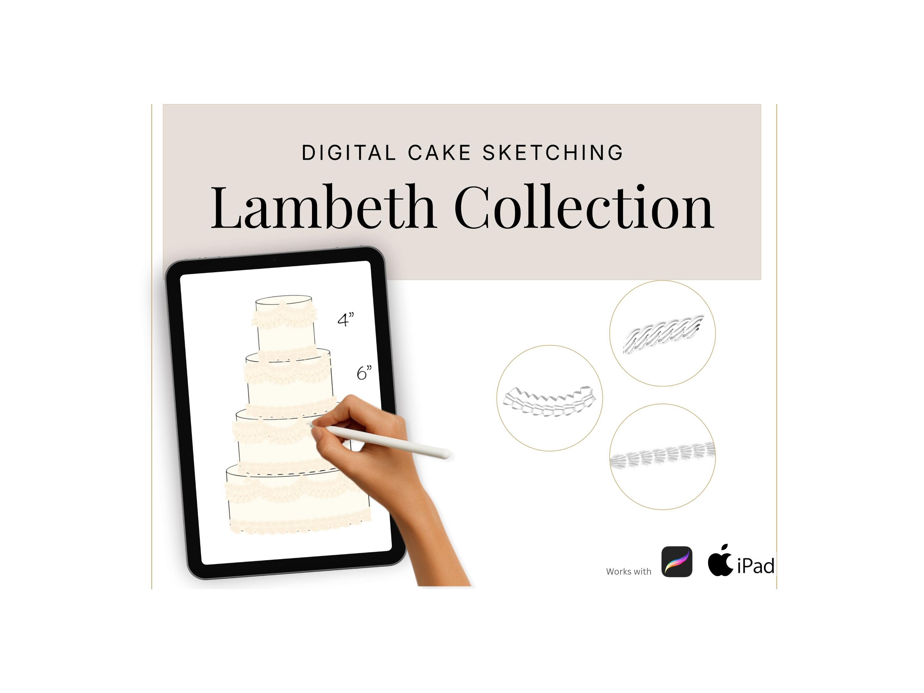This Lambeth style buttercream piping procreate brush set is easy to use, and creates modern designs. With a mix of stamps and brushes, you can eailty create the Lambeth style of cake design. the stamps and brushes are dual colour, meaning there are shadows and highlights built into the stamps. simply choose 2 colours (a darker and a lighter) and start stamping.