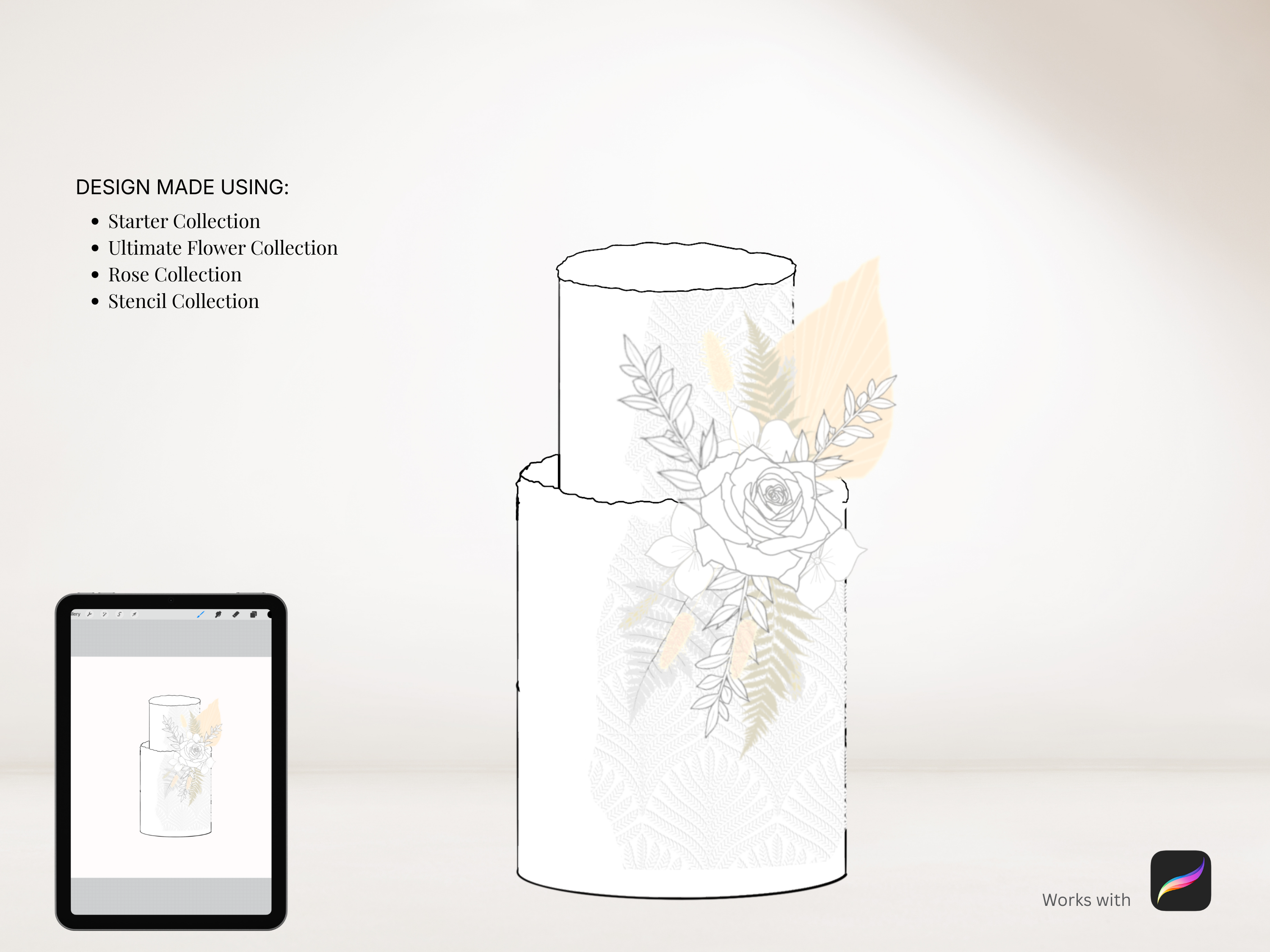 Create beautiful designs with this Rose stamp pack. Perfect for flower cascades on cake designs, or any digital drawing.