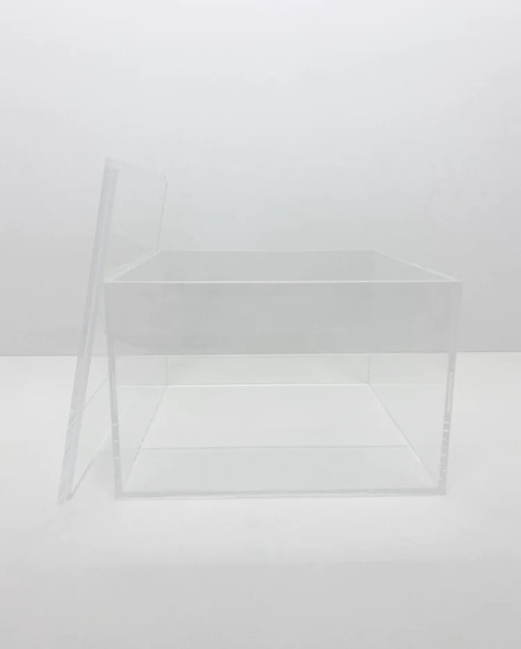 Prop Options premium fillable acrylic boxes made with precision, available in square and round designs with a removable lid. Perfect to use as a cake tier or as a cake stand. These versatile, reusable designs lend themselves to all occasions! Have fun for birthdays adding coloured balloons, confetti and sweets. Alternatively, go elegant with florals or leave empty for the floating illusion, the options are endless.