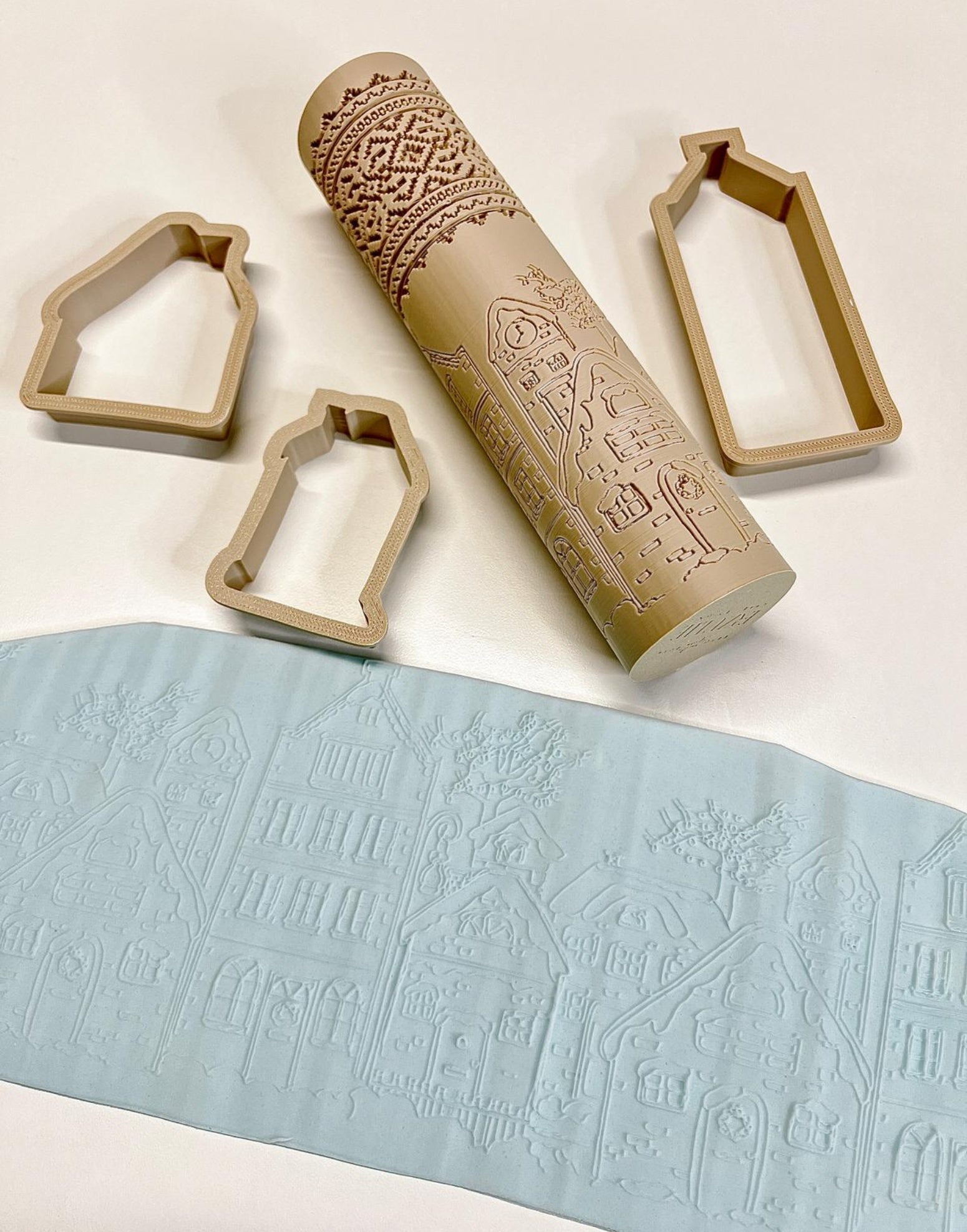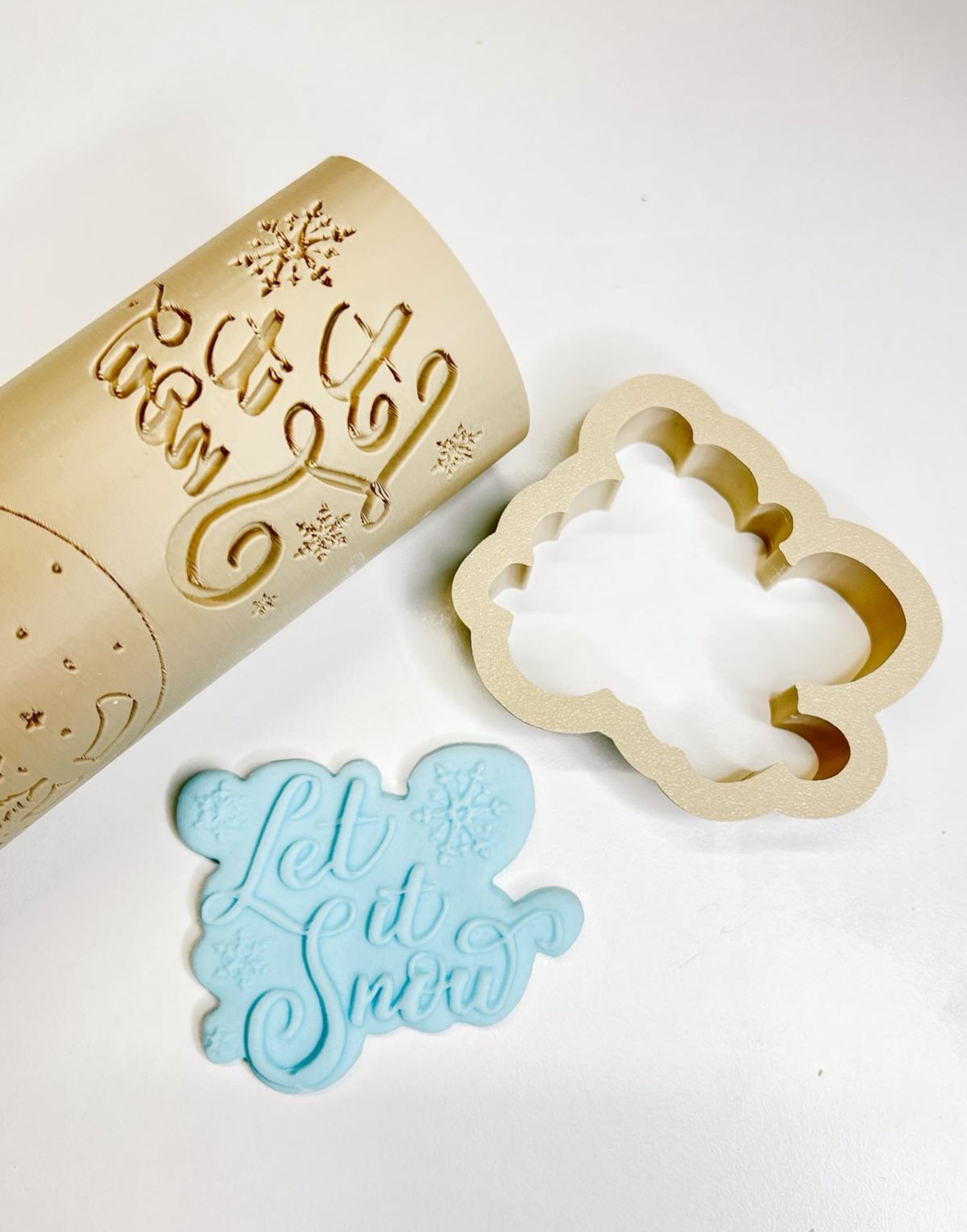 A collection of small illustrated winter motifs including hats, snowglobes and character shapes. Each motif has a matching cutter for clean, precise cut-outs which can be purchased with the rolling pin.
