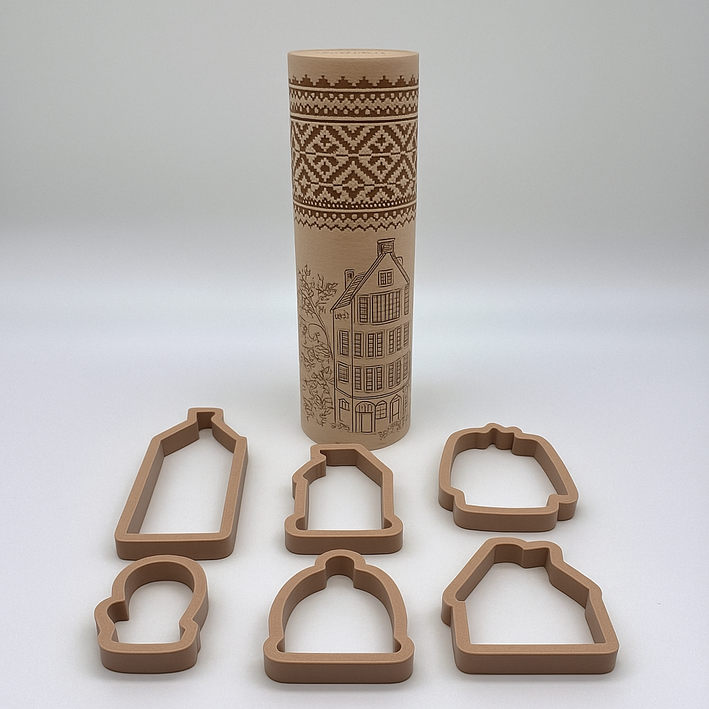 A festive selection of illustrated seasonal elements, including warm winter shapes and character details. Available with or without a set of 8 shaped cutters designed to pair with the design.