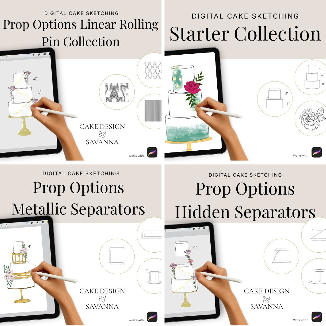 At Prop Options, we believe in supporting the cake industry beyond physical products alone. That's why we're excited to share our official Prop Options digital Product Stamps and Brush sets are available for the first time, giving you an effortless way to sketch, refine, and bring your cake concepts to life. Explore the full collection below.