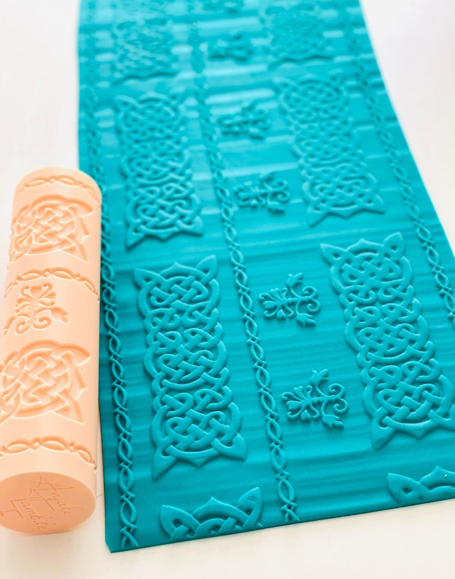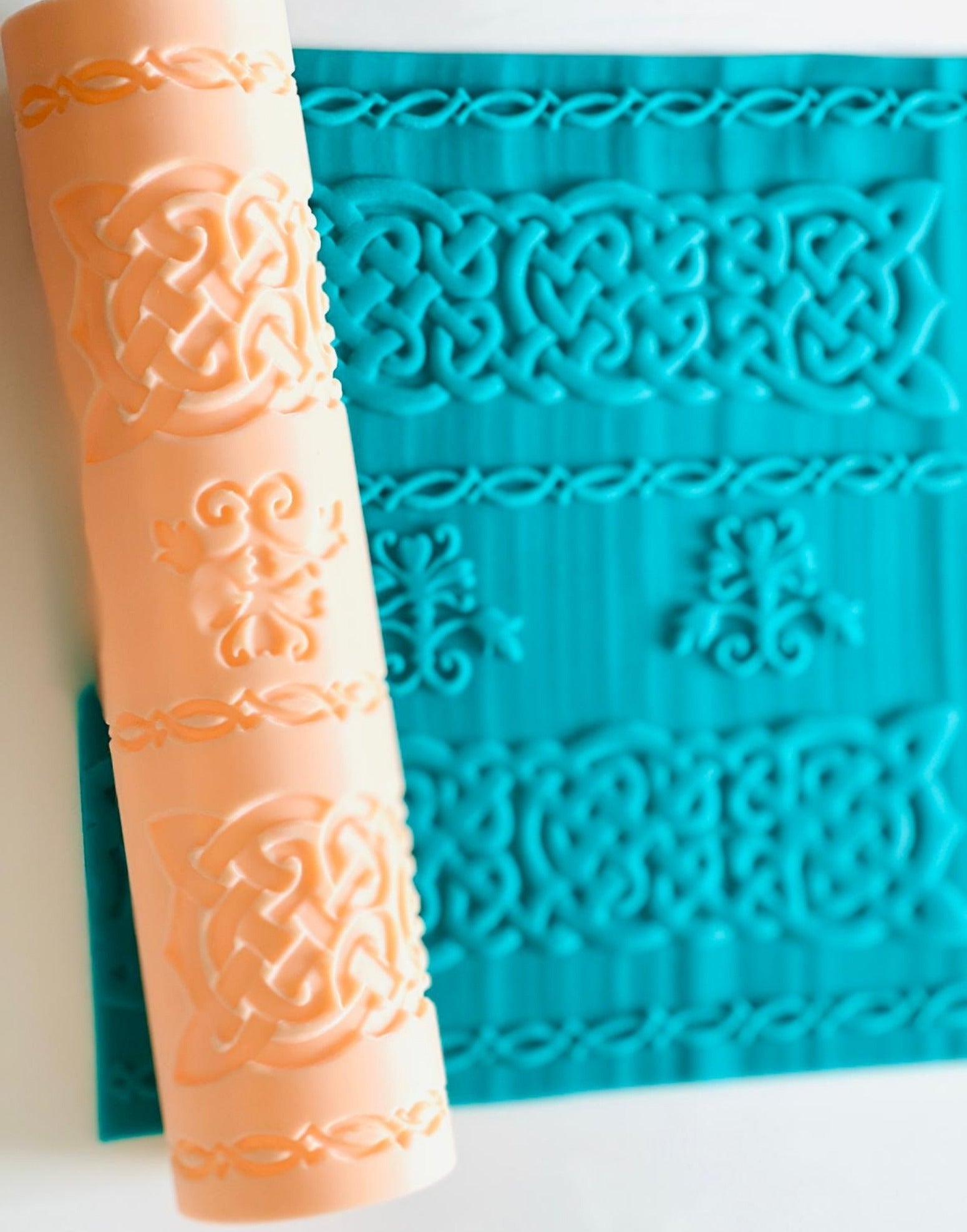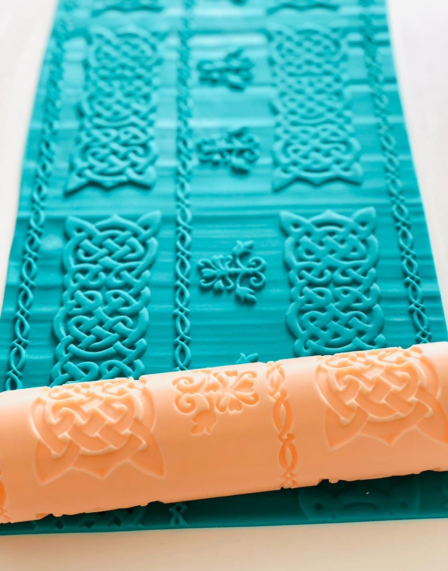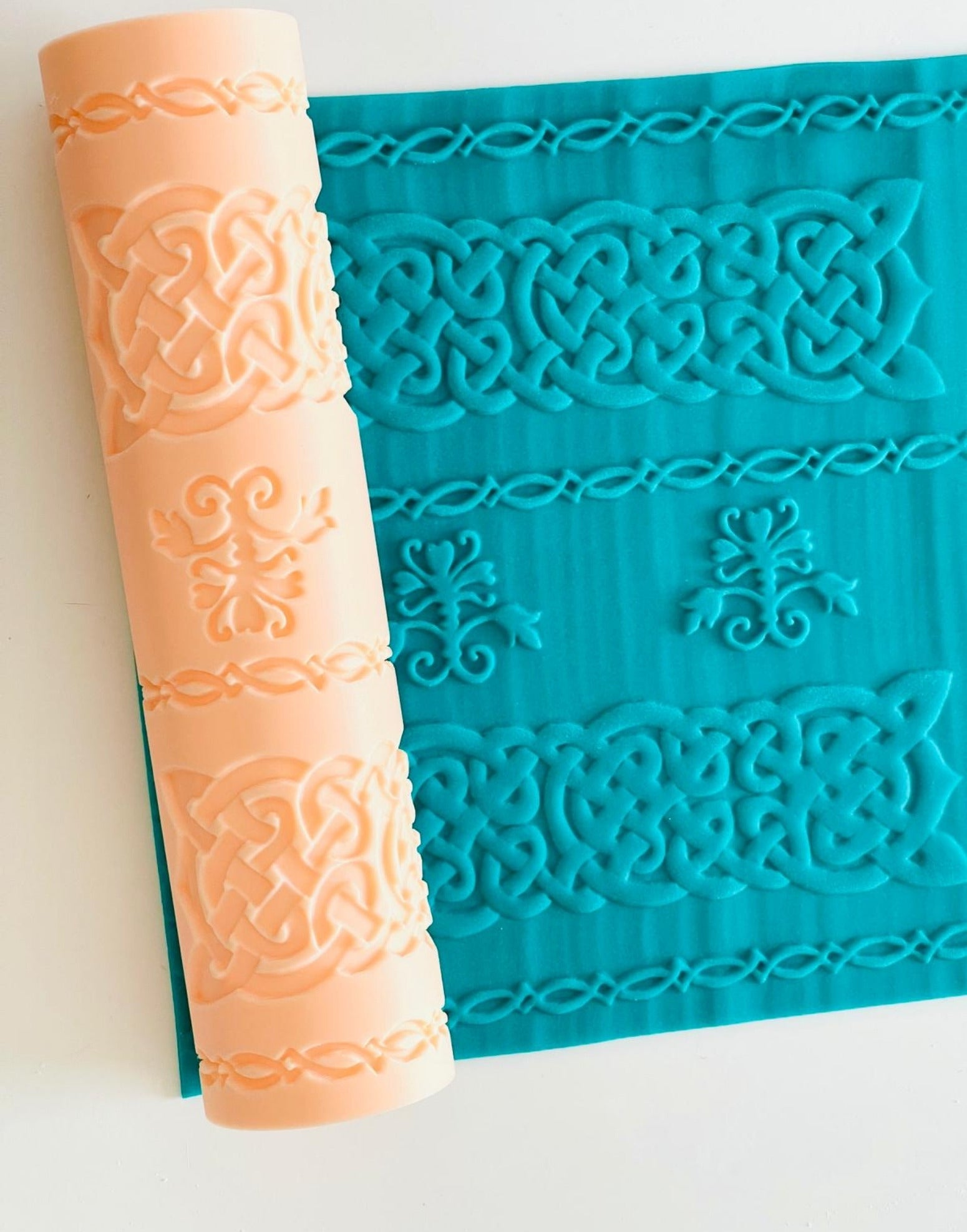 The Celtic Knots Rolling Pin – Anjali Tambde Collaboration delivers a refined, interwoven emboss pattern inspired by traditional Celtic knotwork. Developed in partnership with Anjali Tambde of Global Cake Toppers, this design creates crisp, continuous impressions with clarity and depth across fondant, modelling chocolate and buttercream panels.
