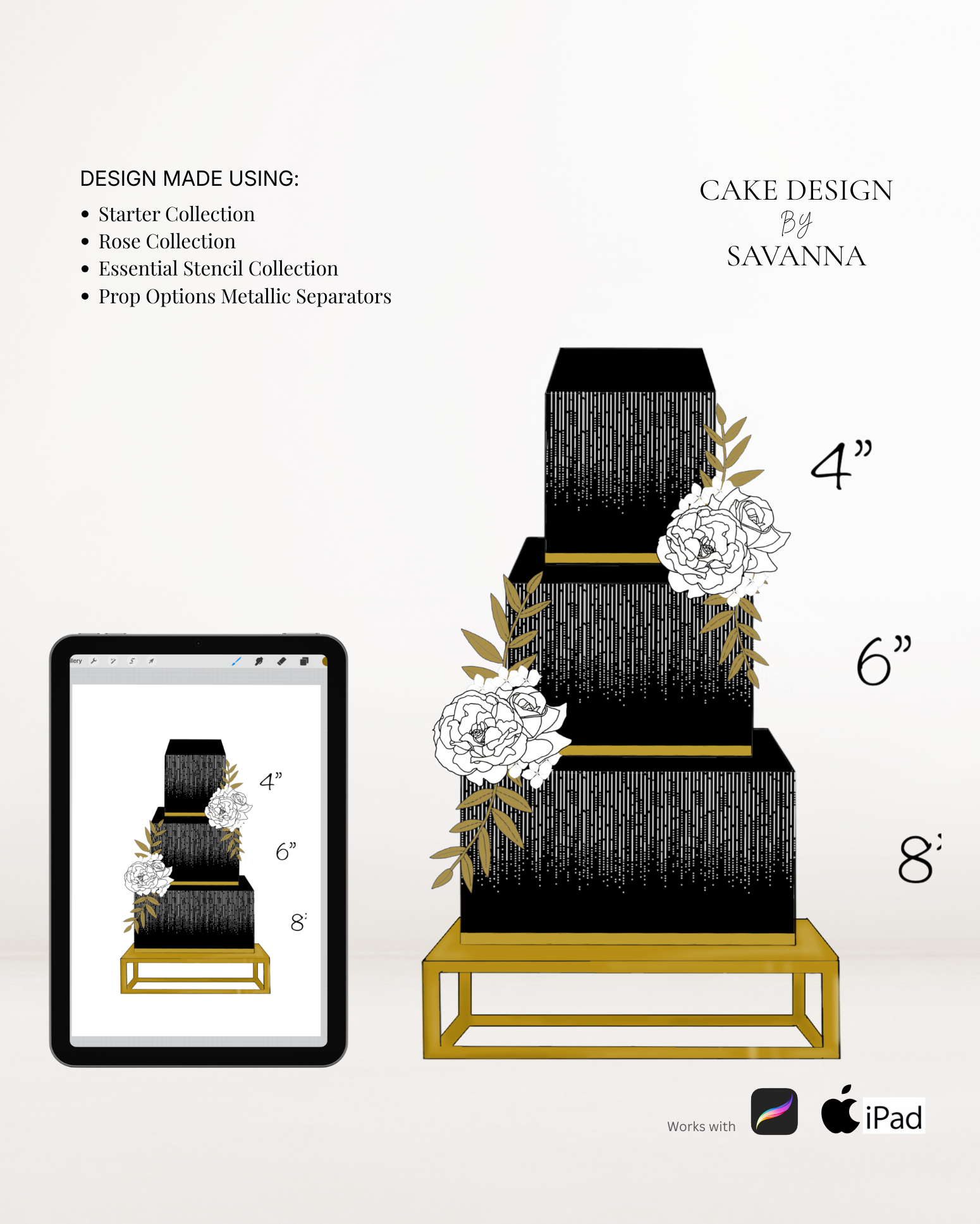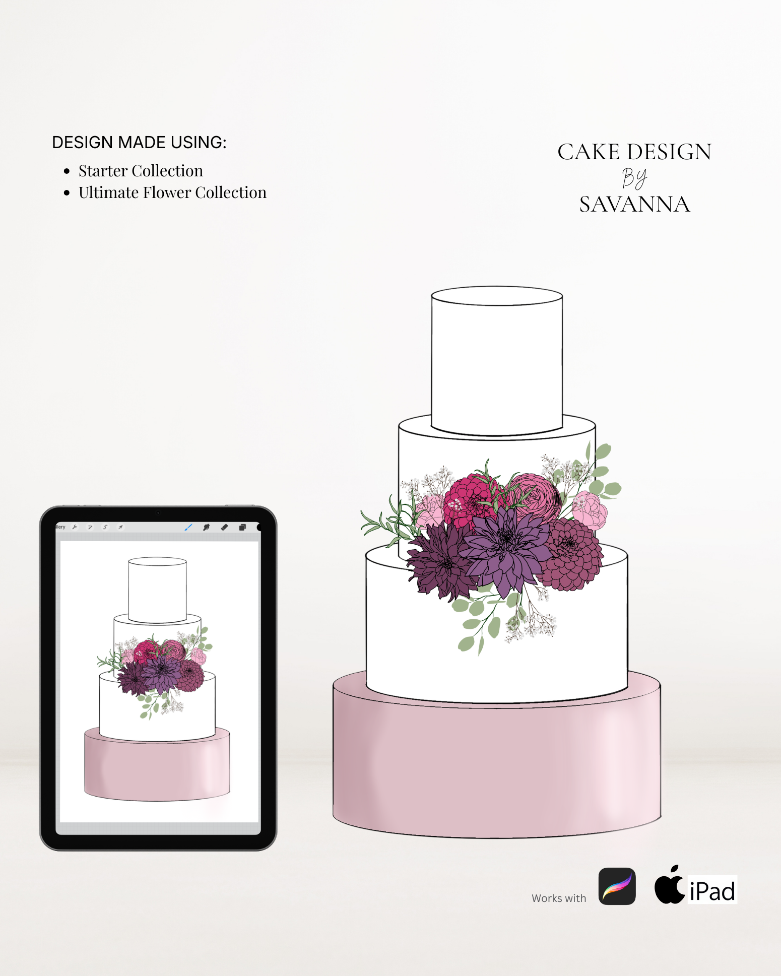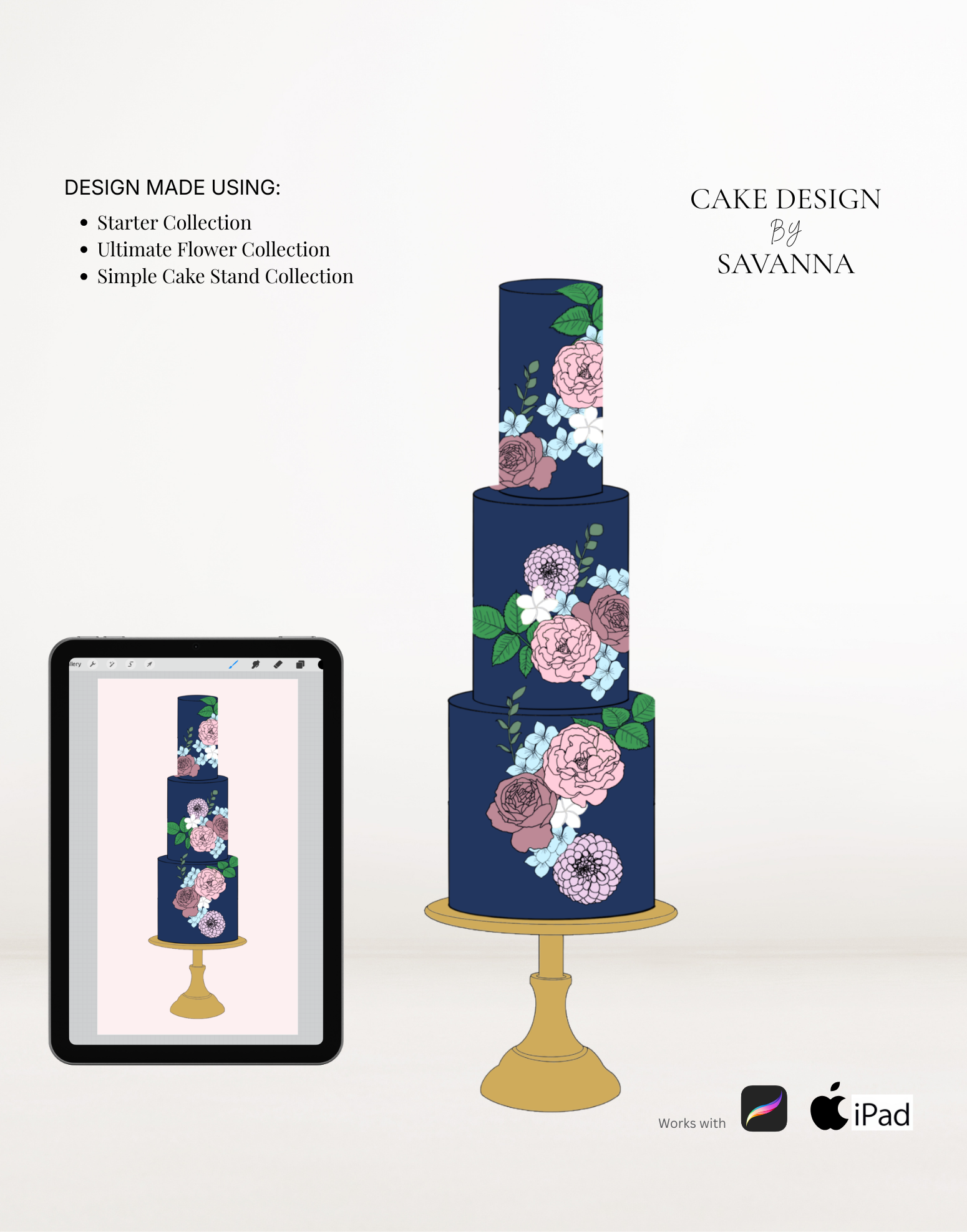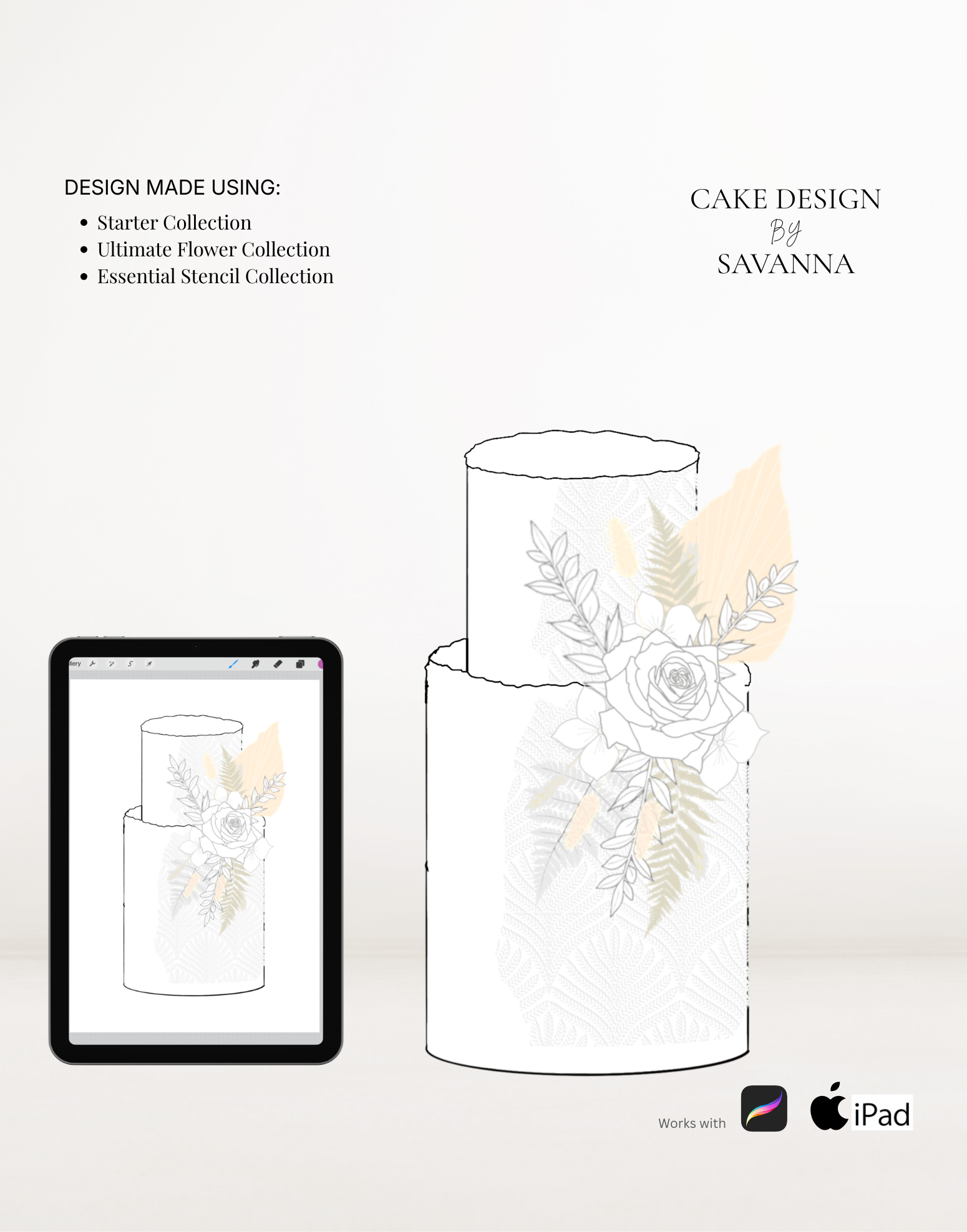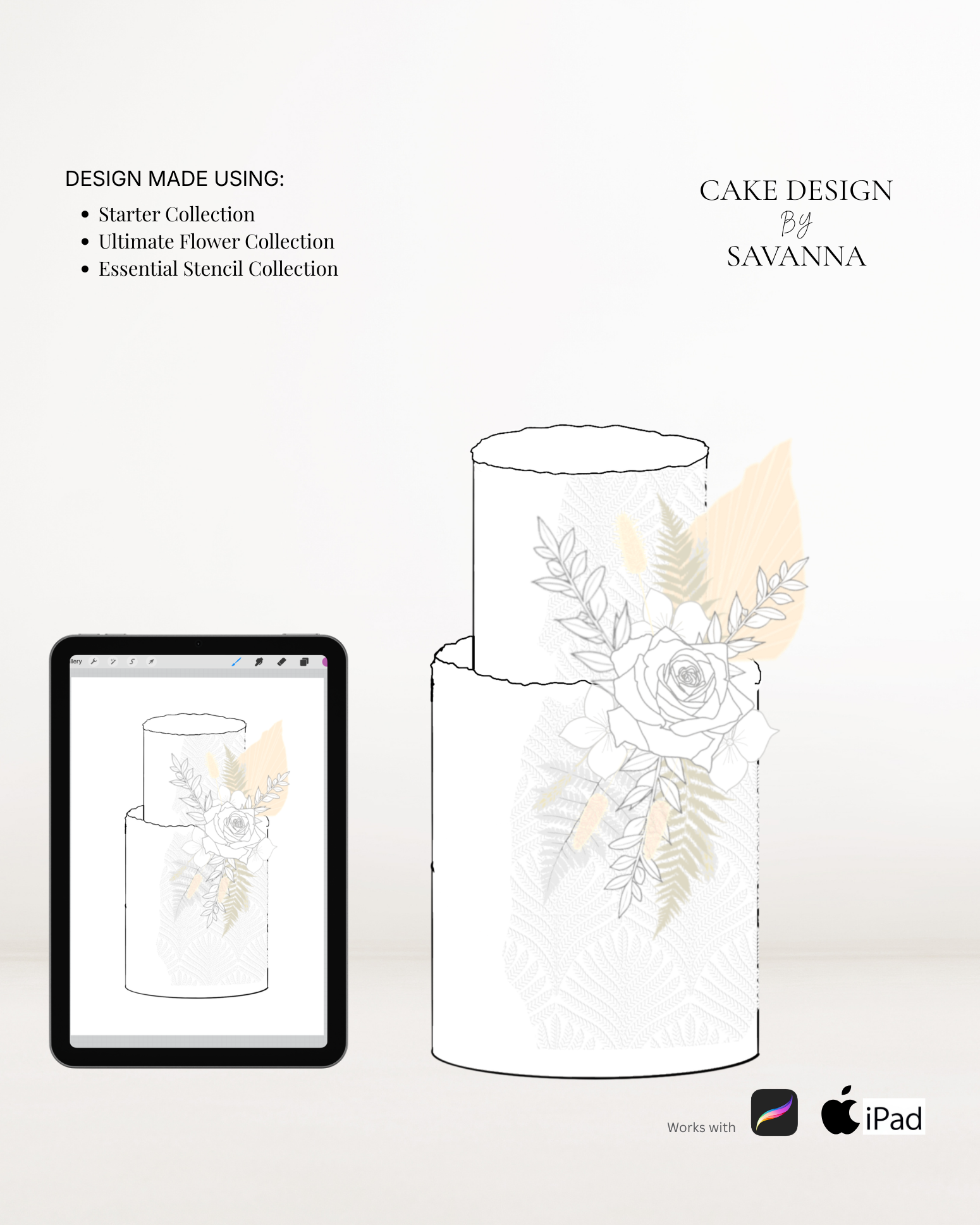 From digital Procreate stamp sets and ready-designed packages to future physical design tools, Cake Design by Savanna exists to remove repetitive work, streamline workflows, and enhance how cake designs are presented to clients.