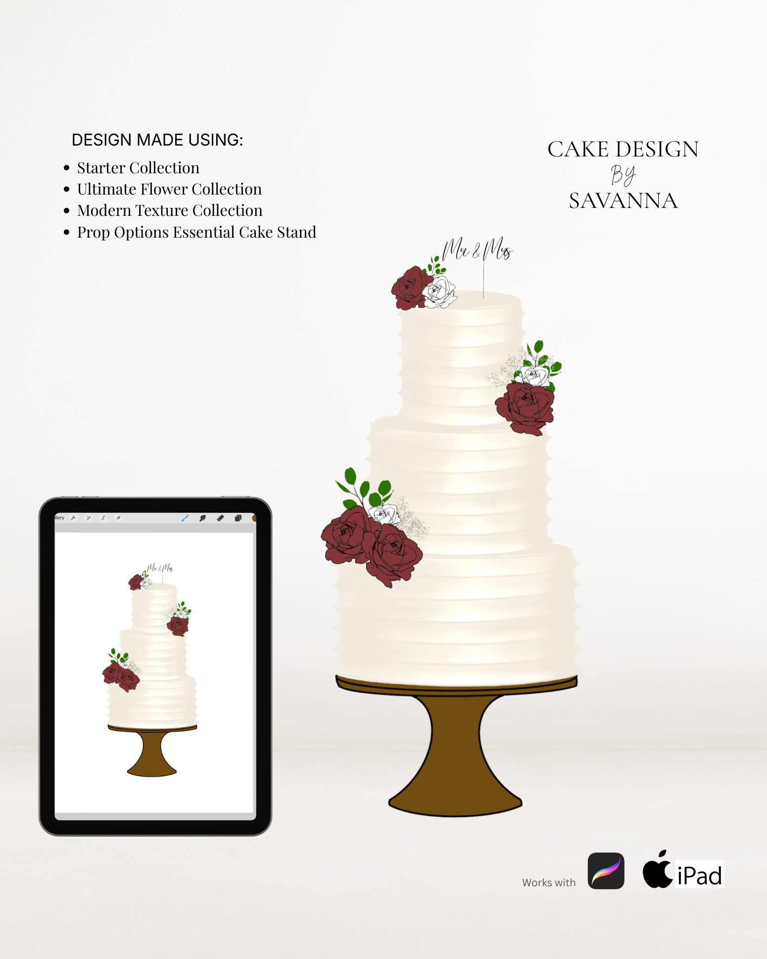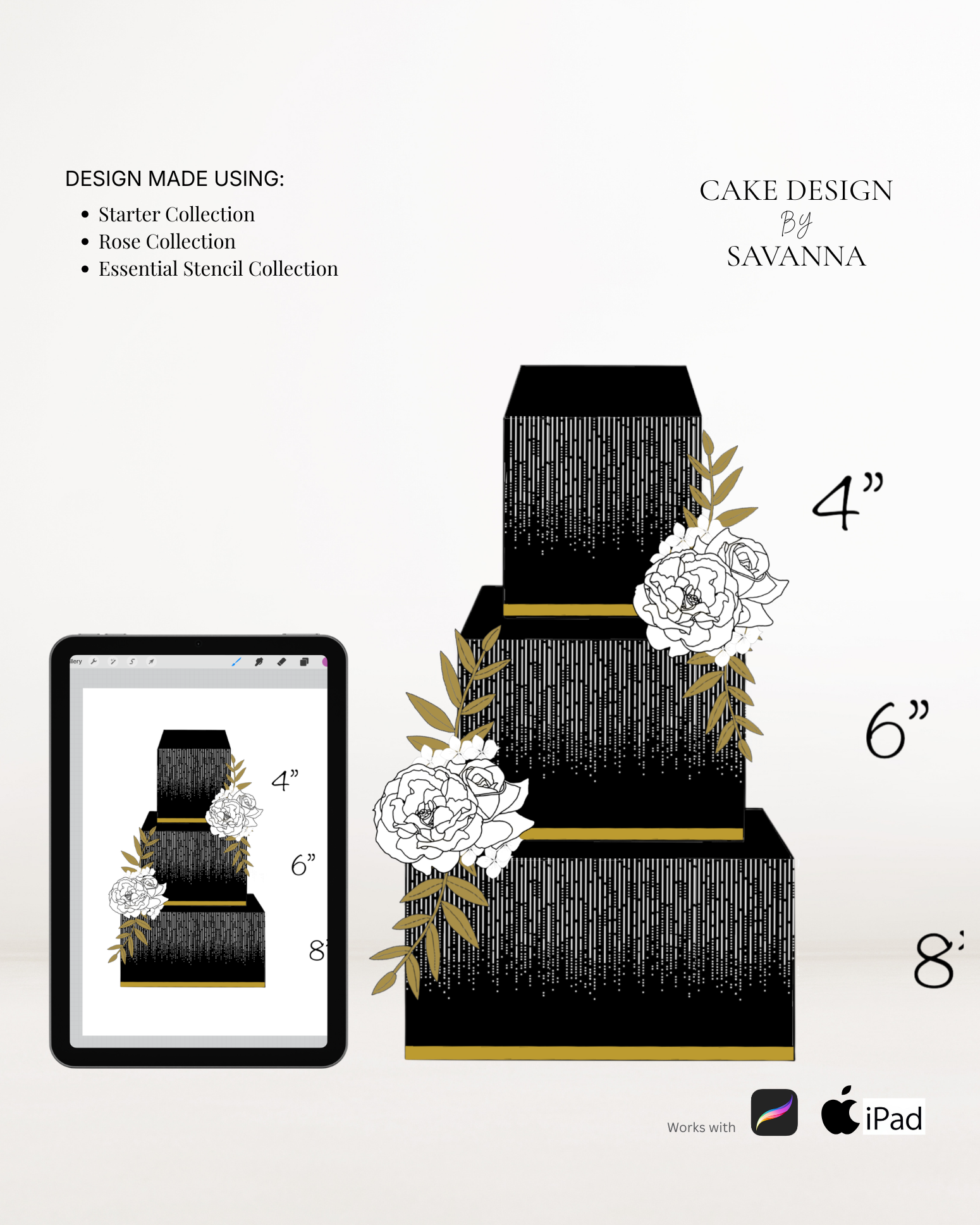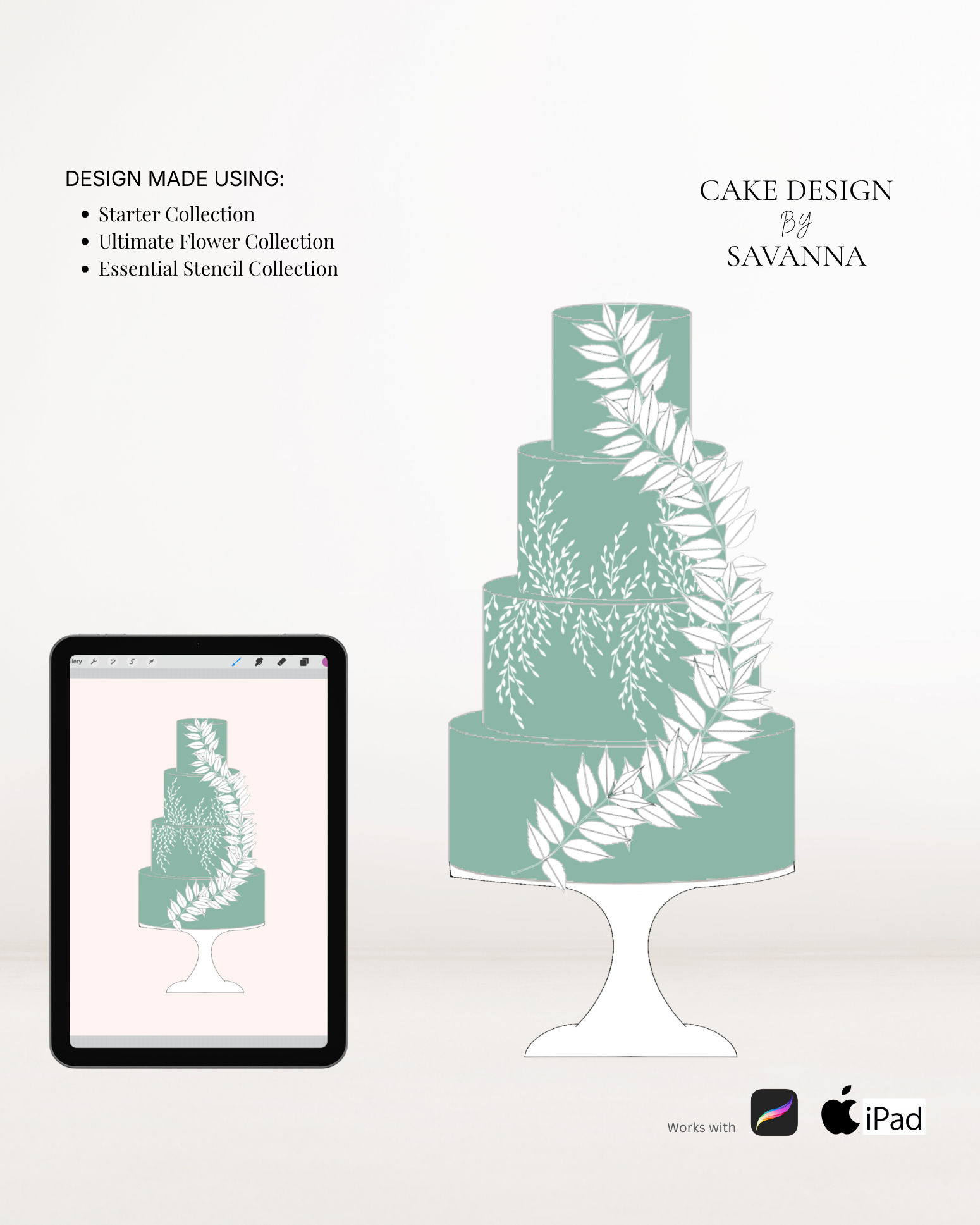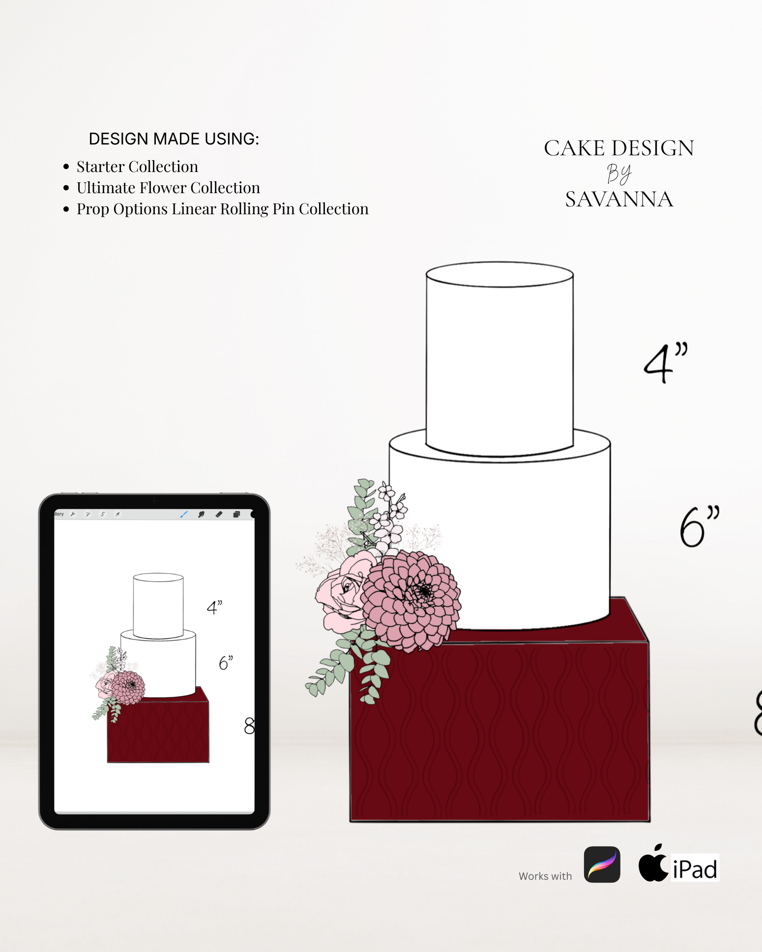 From digital Procreate stamp sets and ready-designed packages to future physical design tools, Cake Design by Savanna exists to remove repetitive work, streamline workflows, and enhance how cake designs are presented to clients.