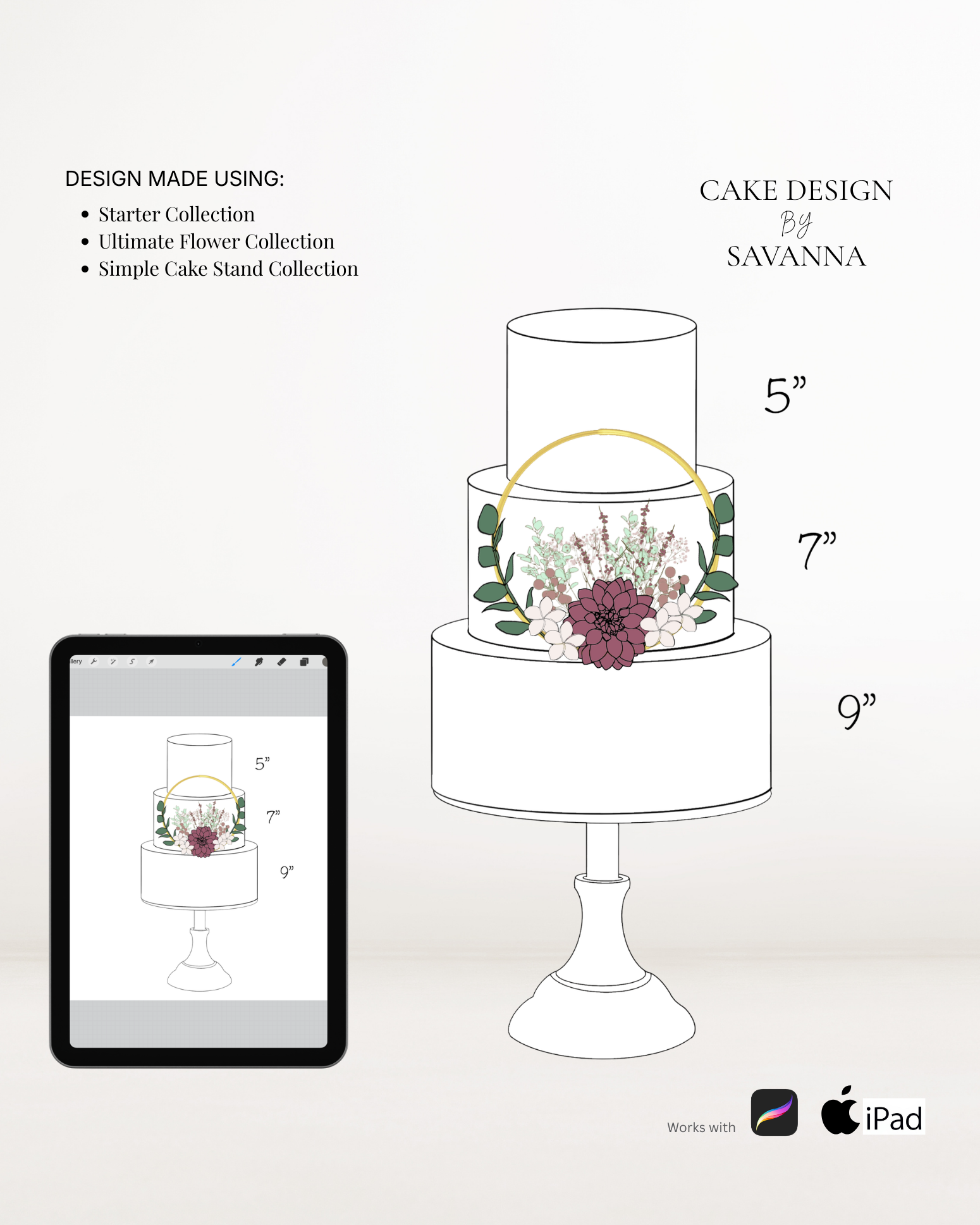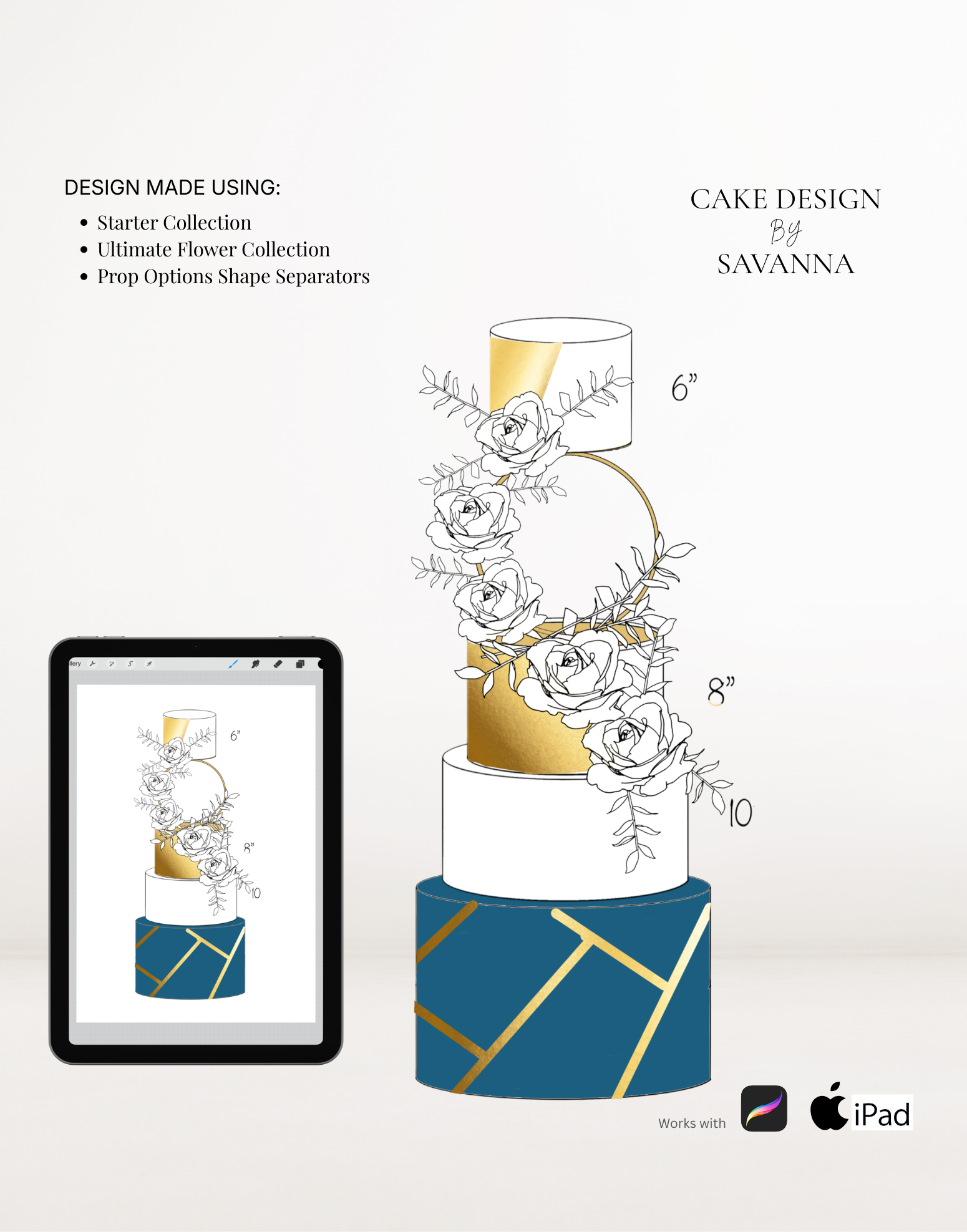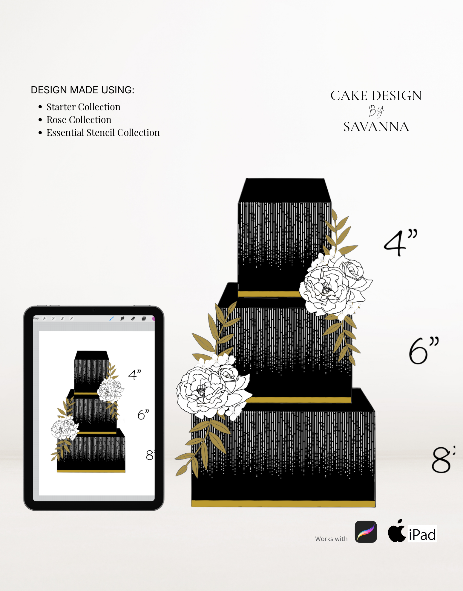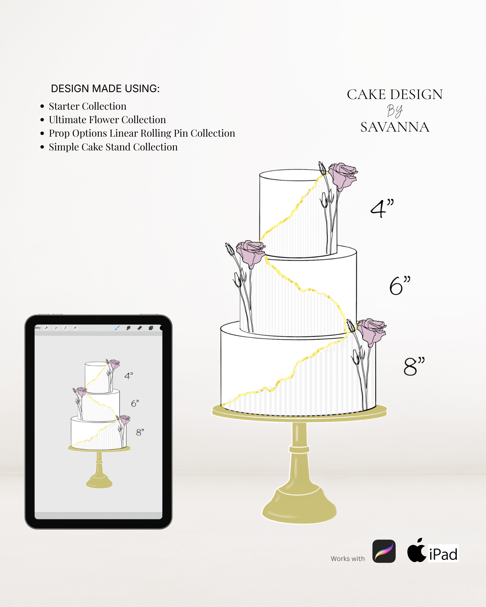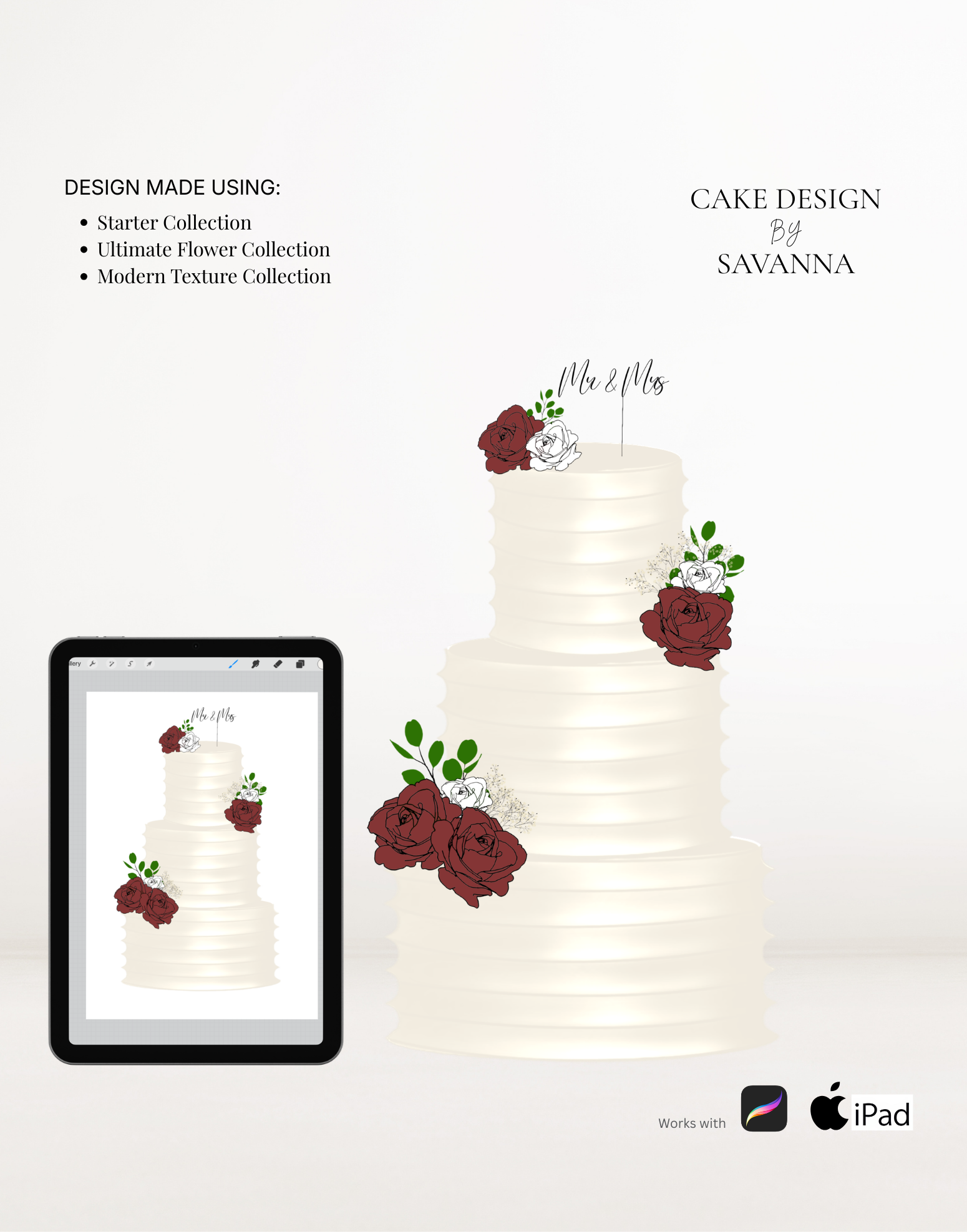 From digital Procreate stamp sets and ready-designed packages to future physical design tools, Cake Design by Savanna exists to remove repetitive work, streamline workflows, and enhance how cake designs are presented to clients.