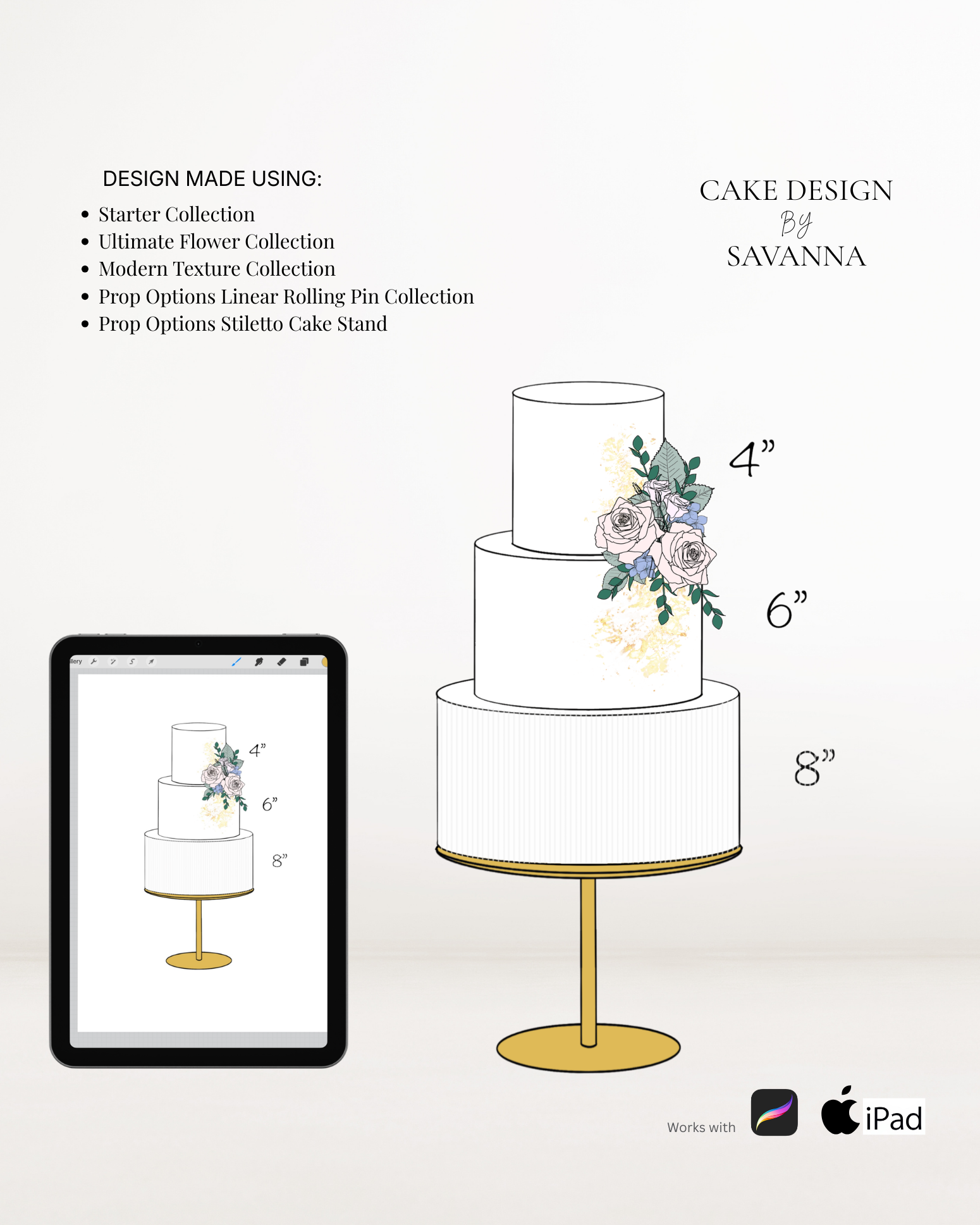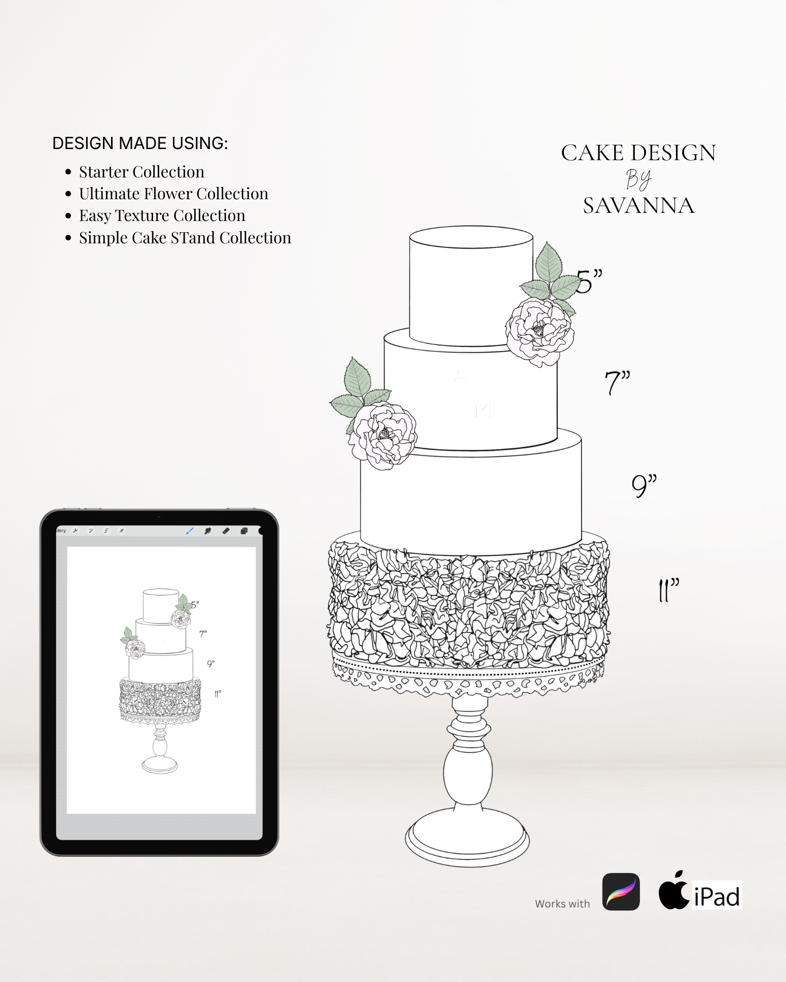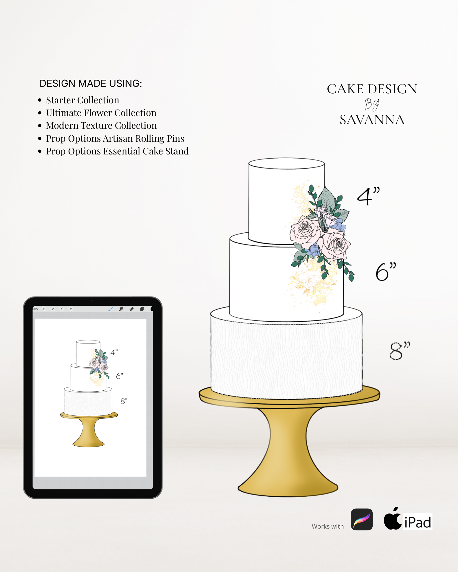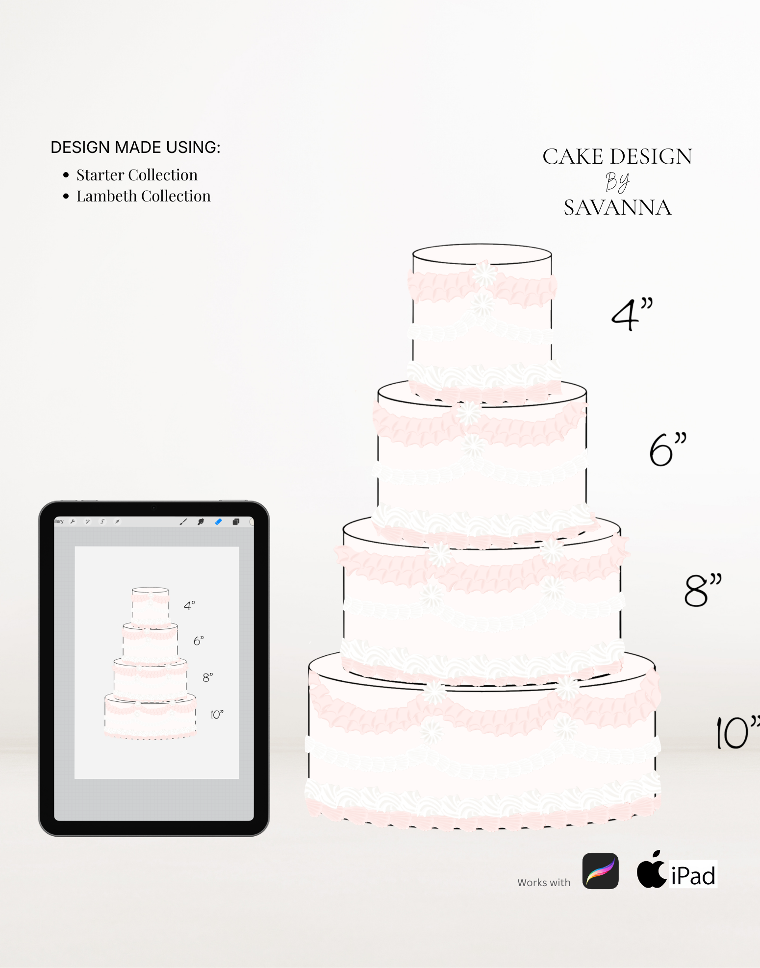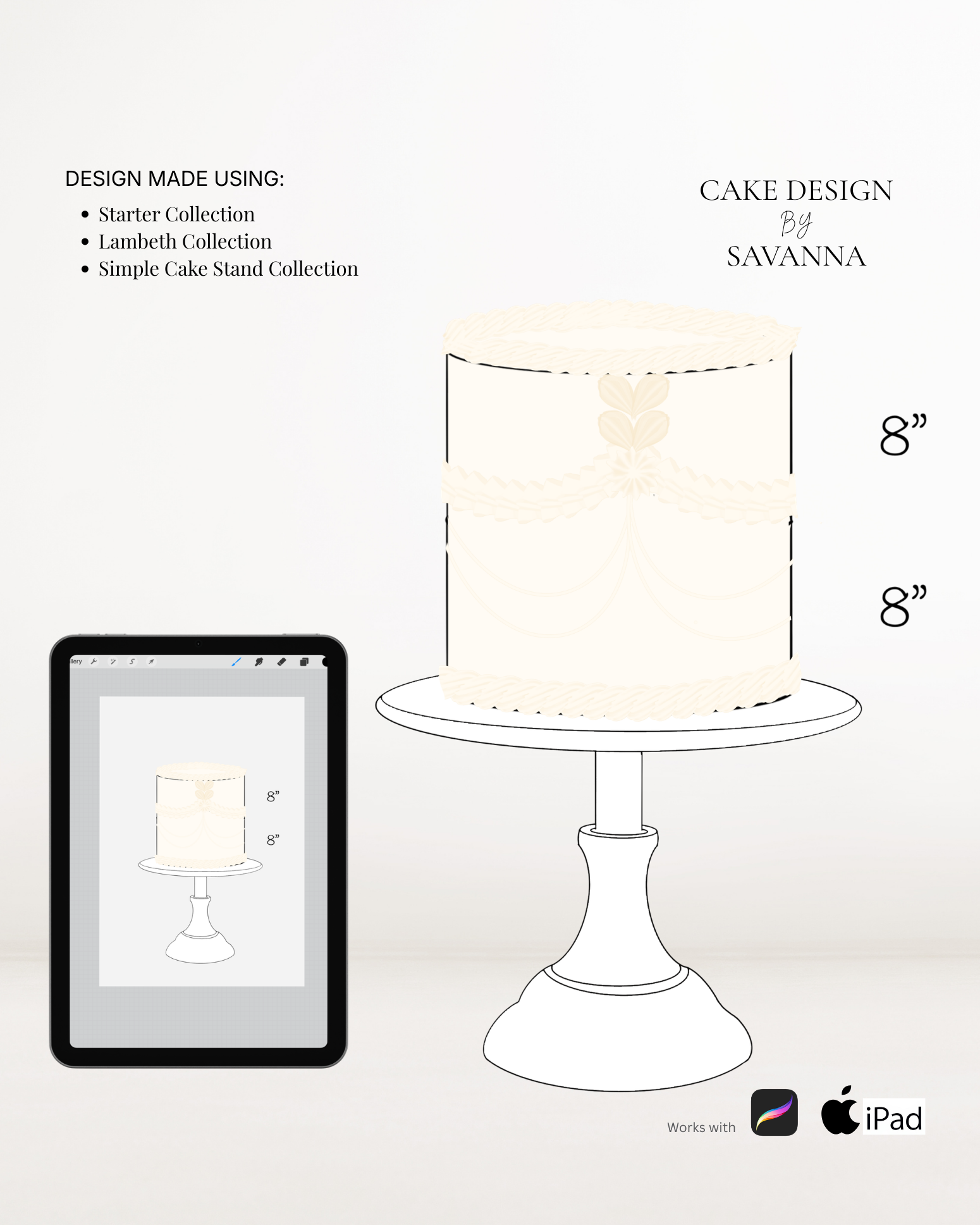 From digital Procreate stamp sets and ready-designed packages to future physical design tools, Cake Design by Savanna exists to remove repetitive work, streamline workflows, and enhance how cake designs are presented to clients.
