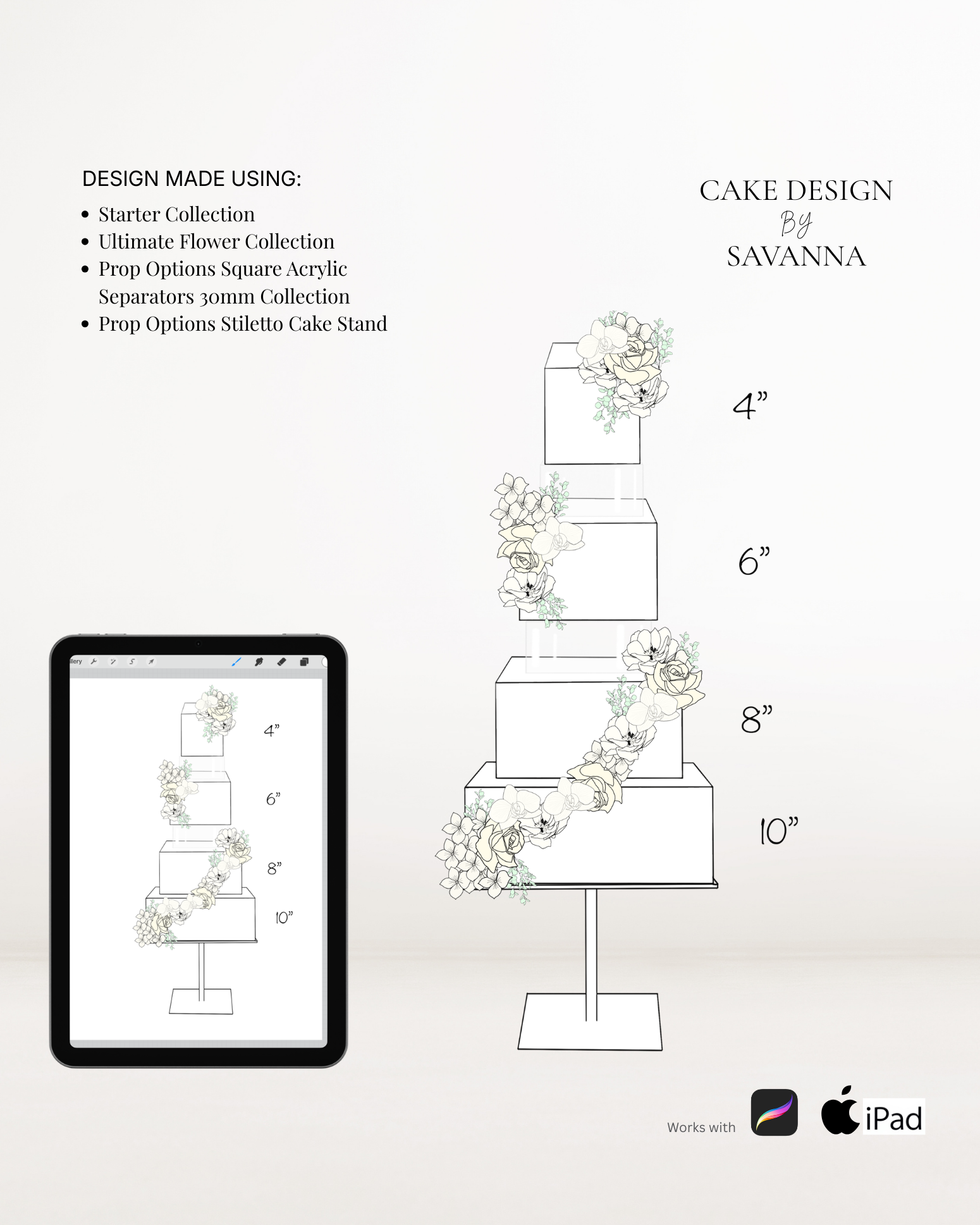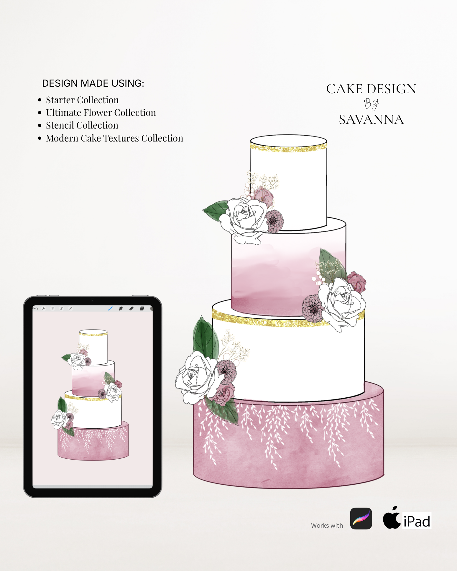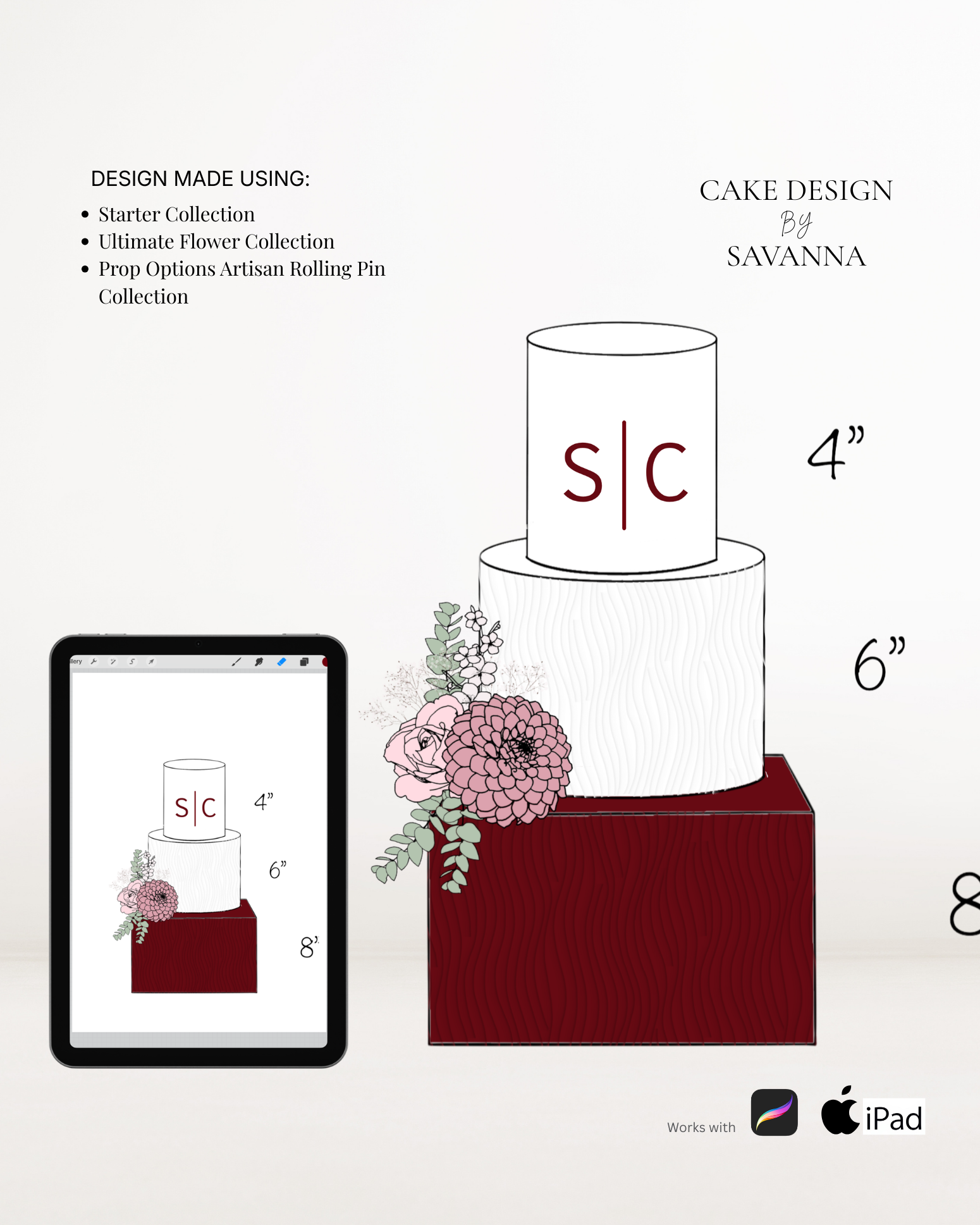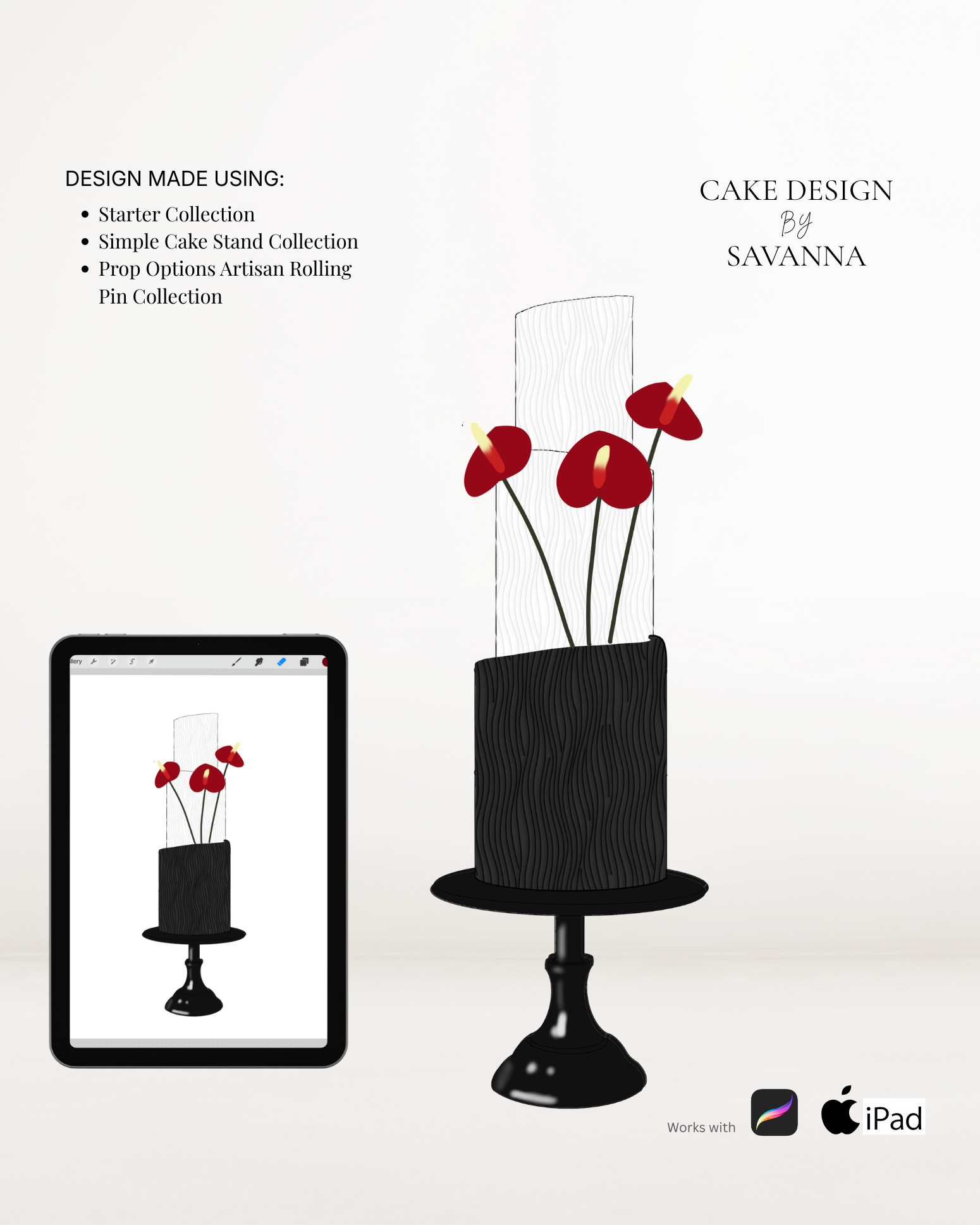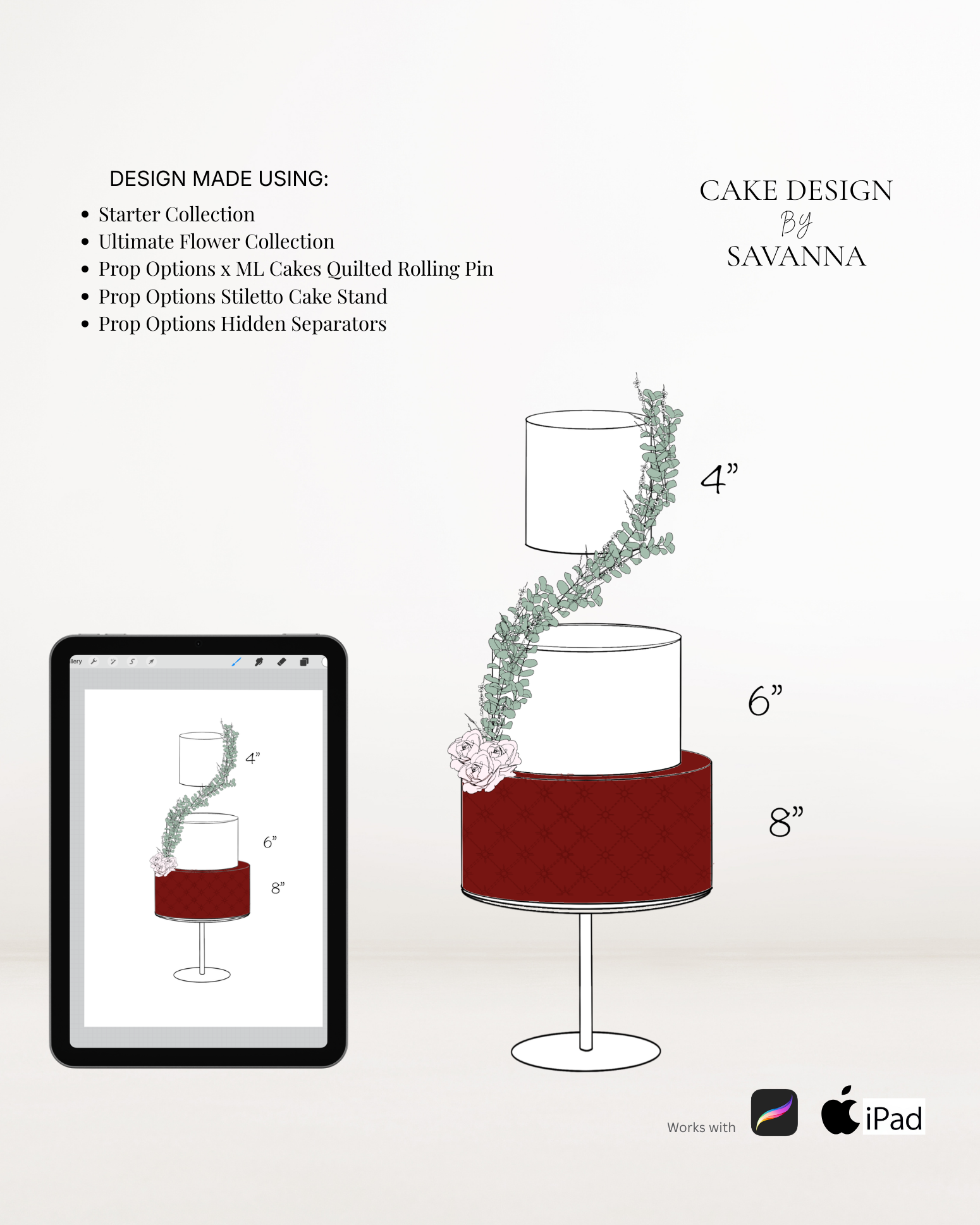 From digital Procreate stamp sets and ready-designed packages to future physical design tools, Cake Design by Savanna exists to remove repetitive work, streamline workflows, and enhance how cake designs are presented to clients.
