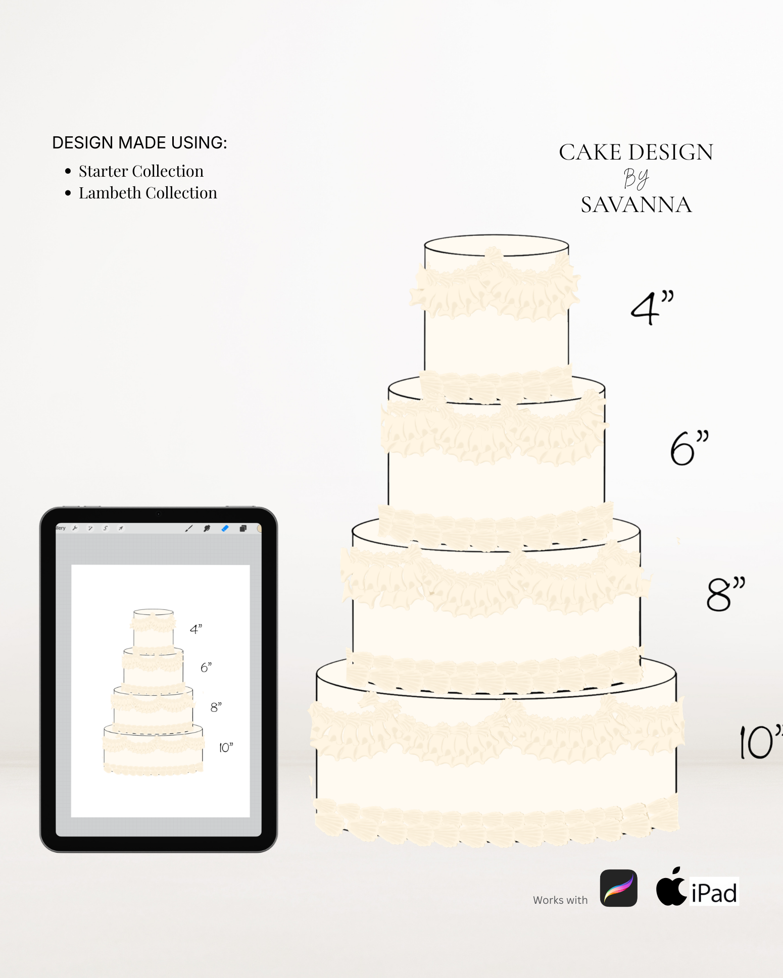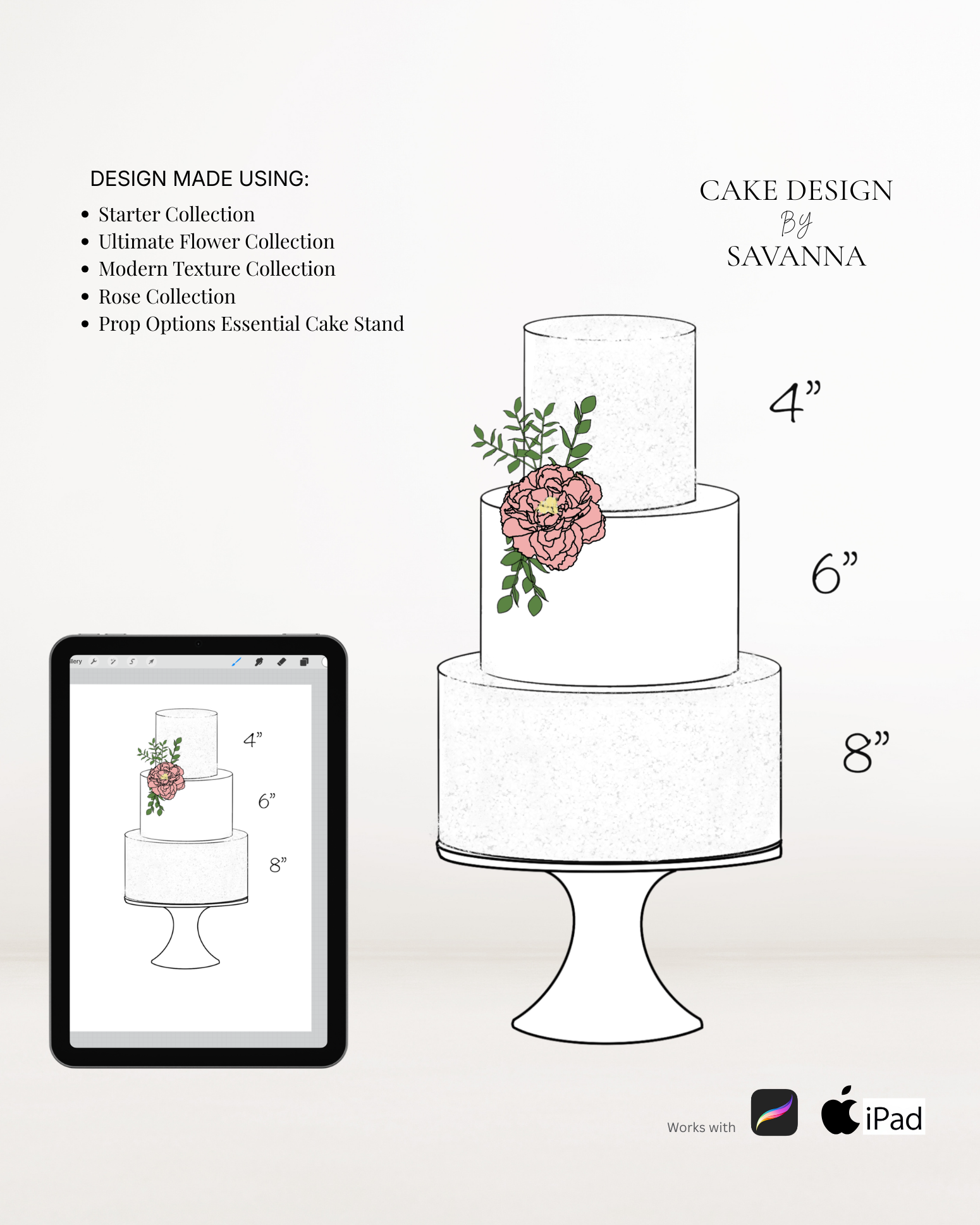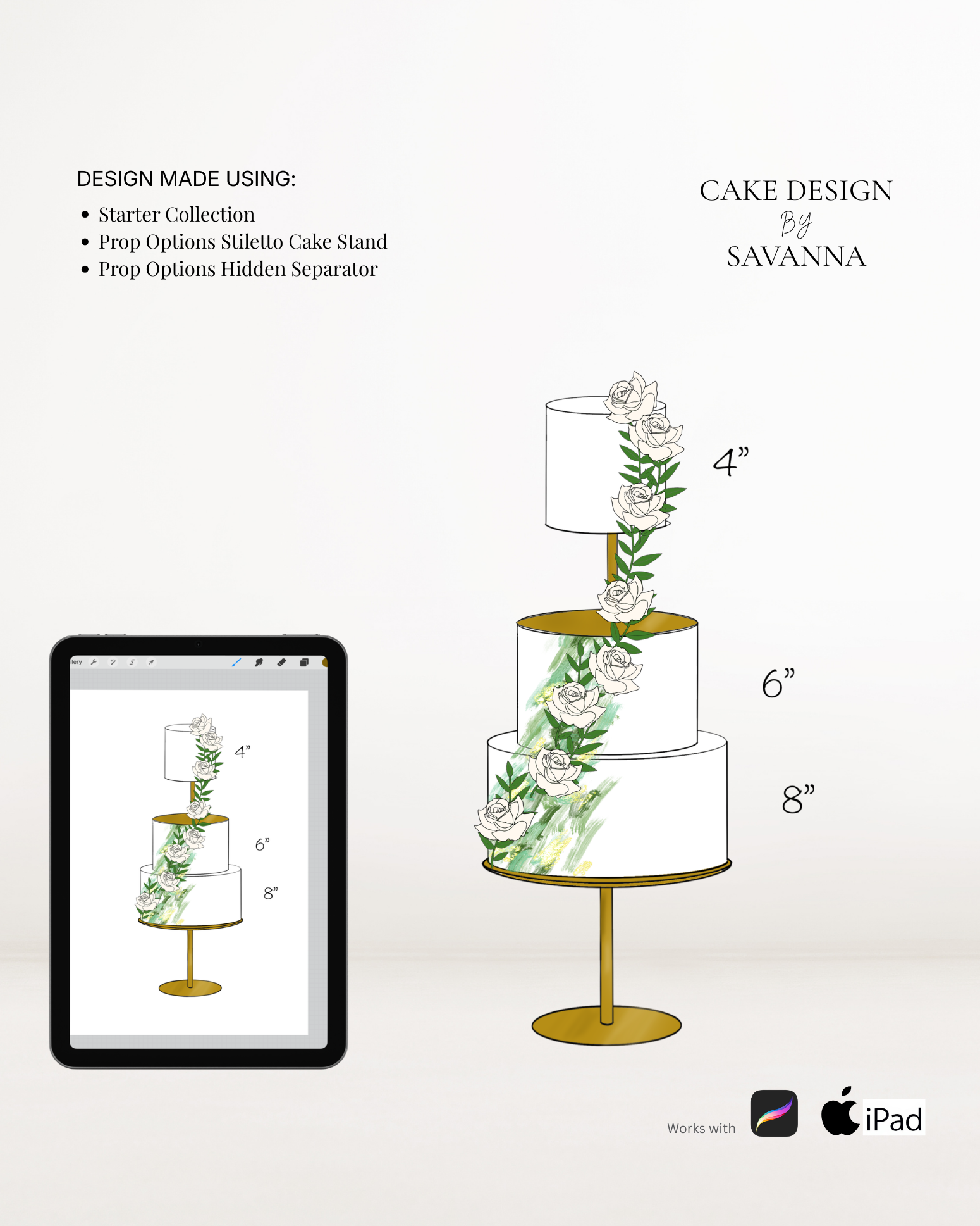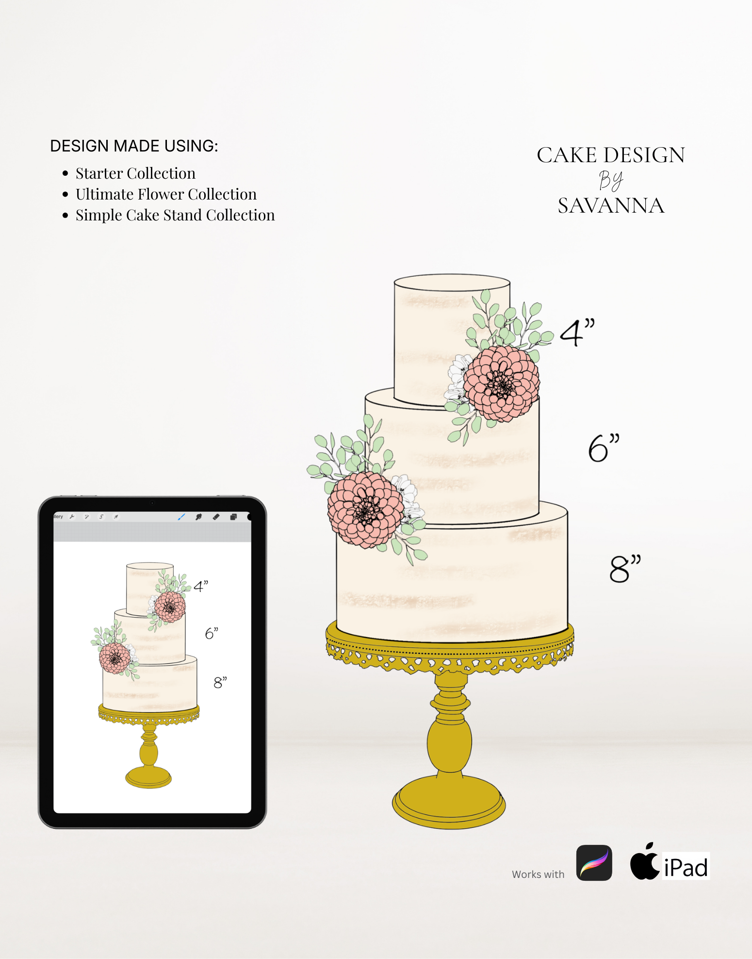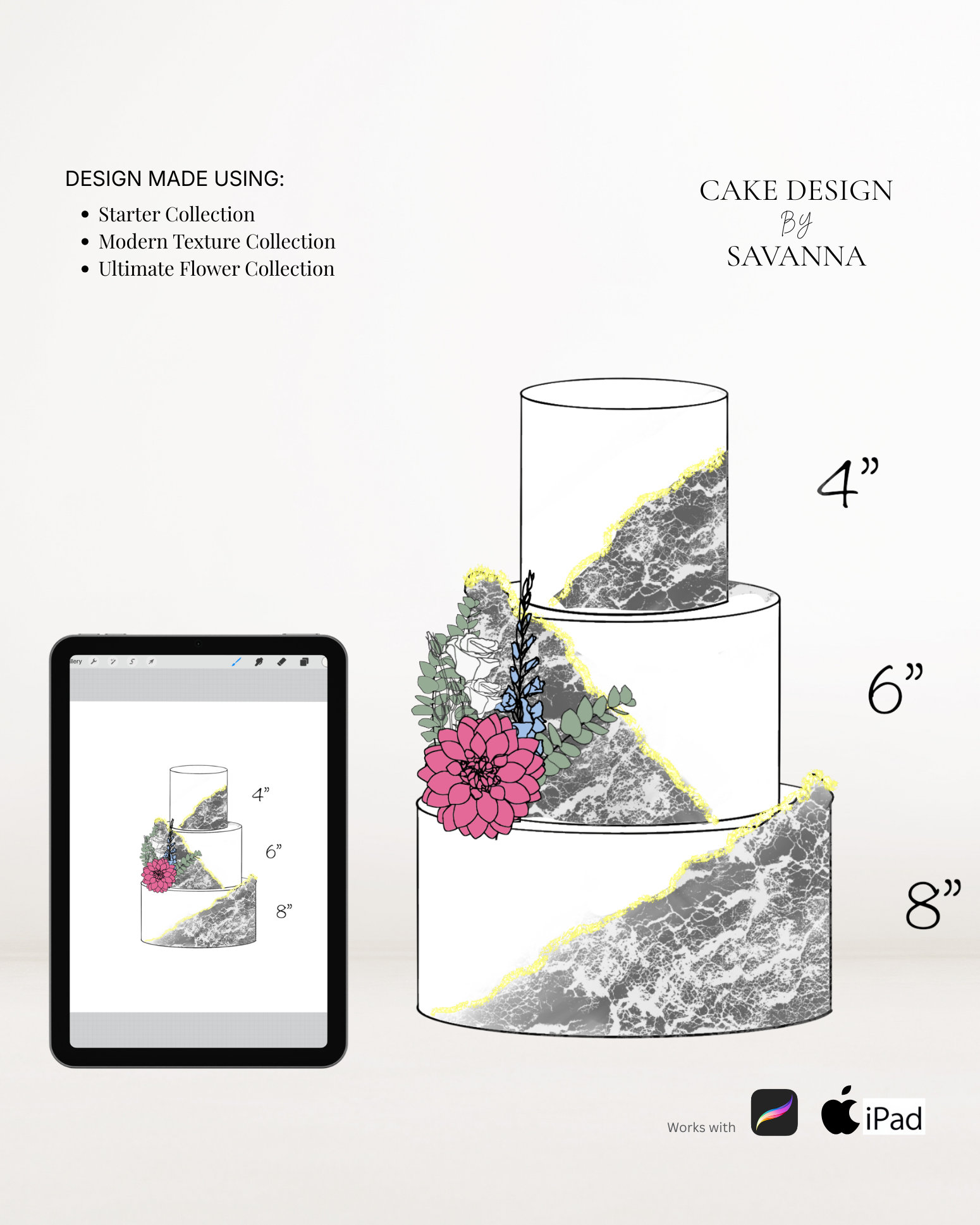 From digital Procreate stamp sets and ready-designed packages to future physical design tools, Cake Design by Savanna exists to remove repetitive work, streamline workflows, and enhance how cake designs are presented to clients.