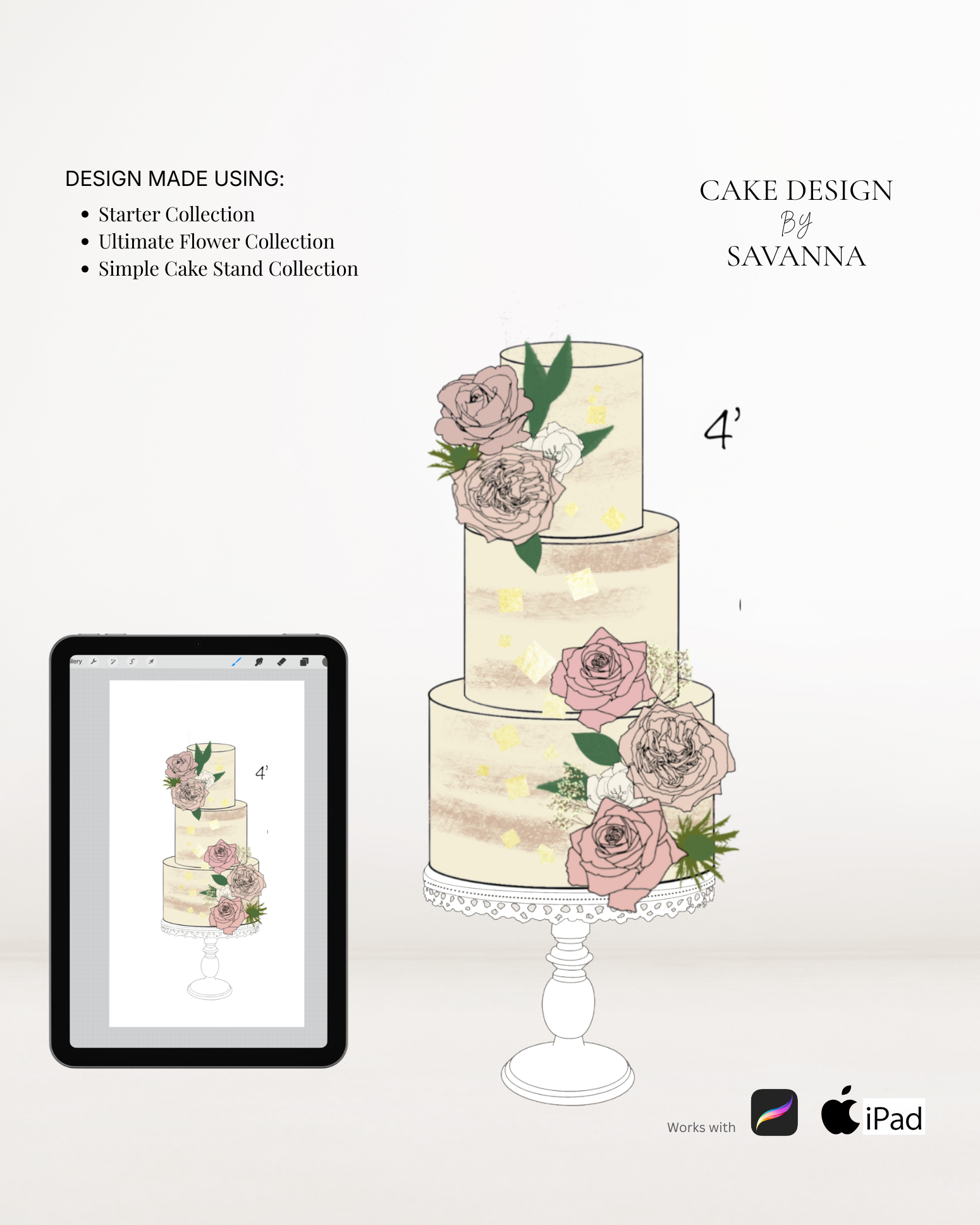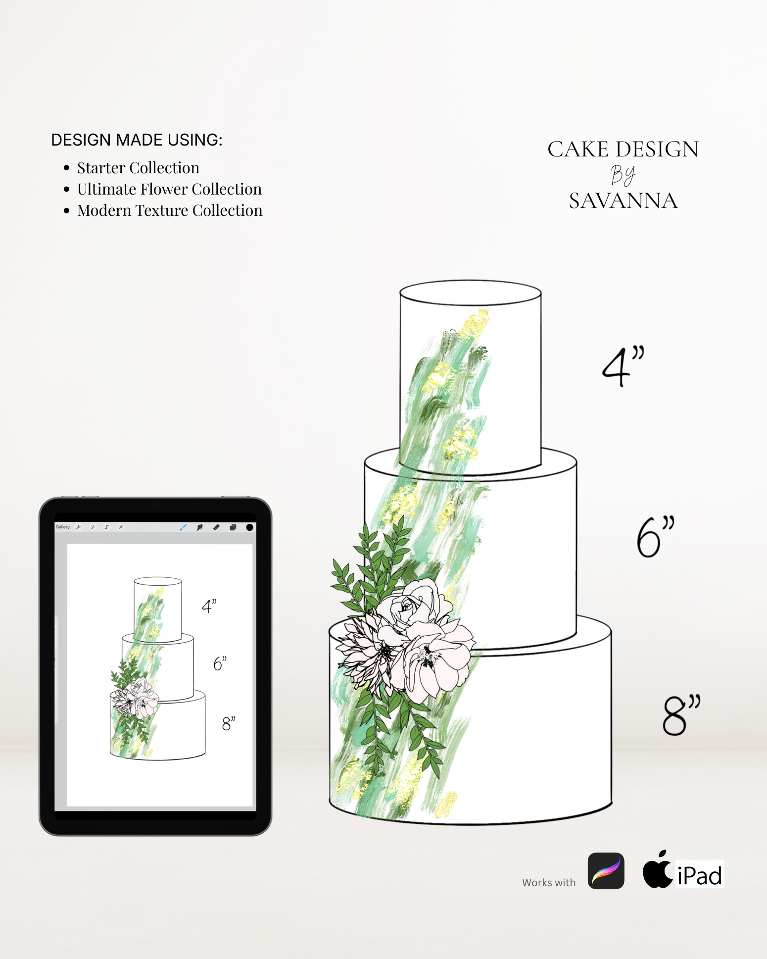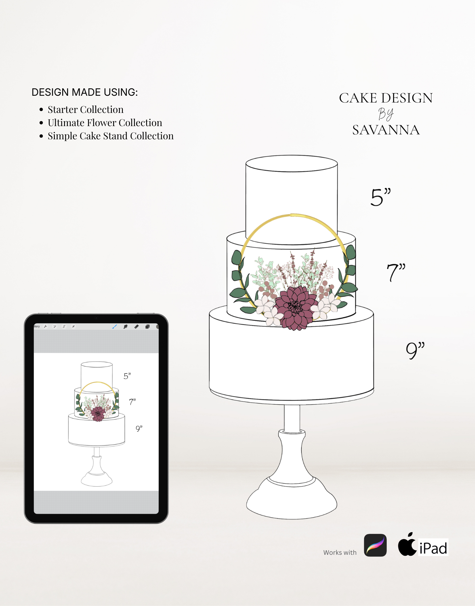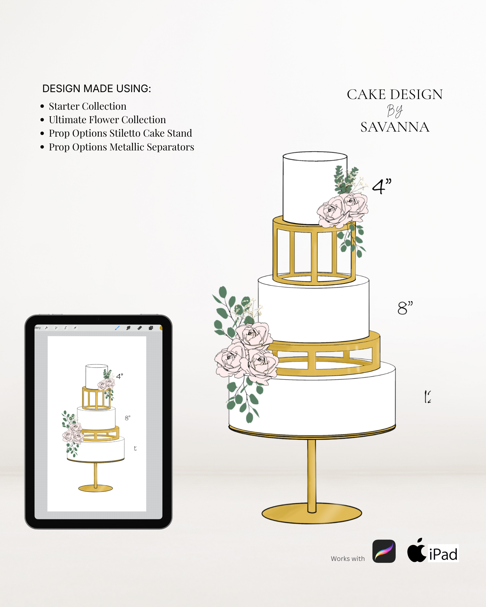 From digital Procreate stamp sets and ready-designed packages to future physical design tools, Cake Design by Savanna exists to remove repetitive work, streamline workflows, and enhance how cake designs are presented to clients.