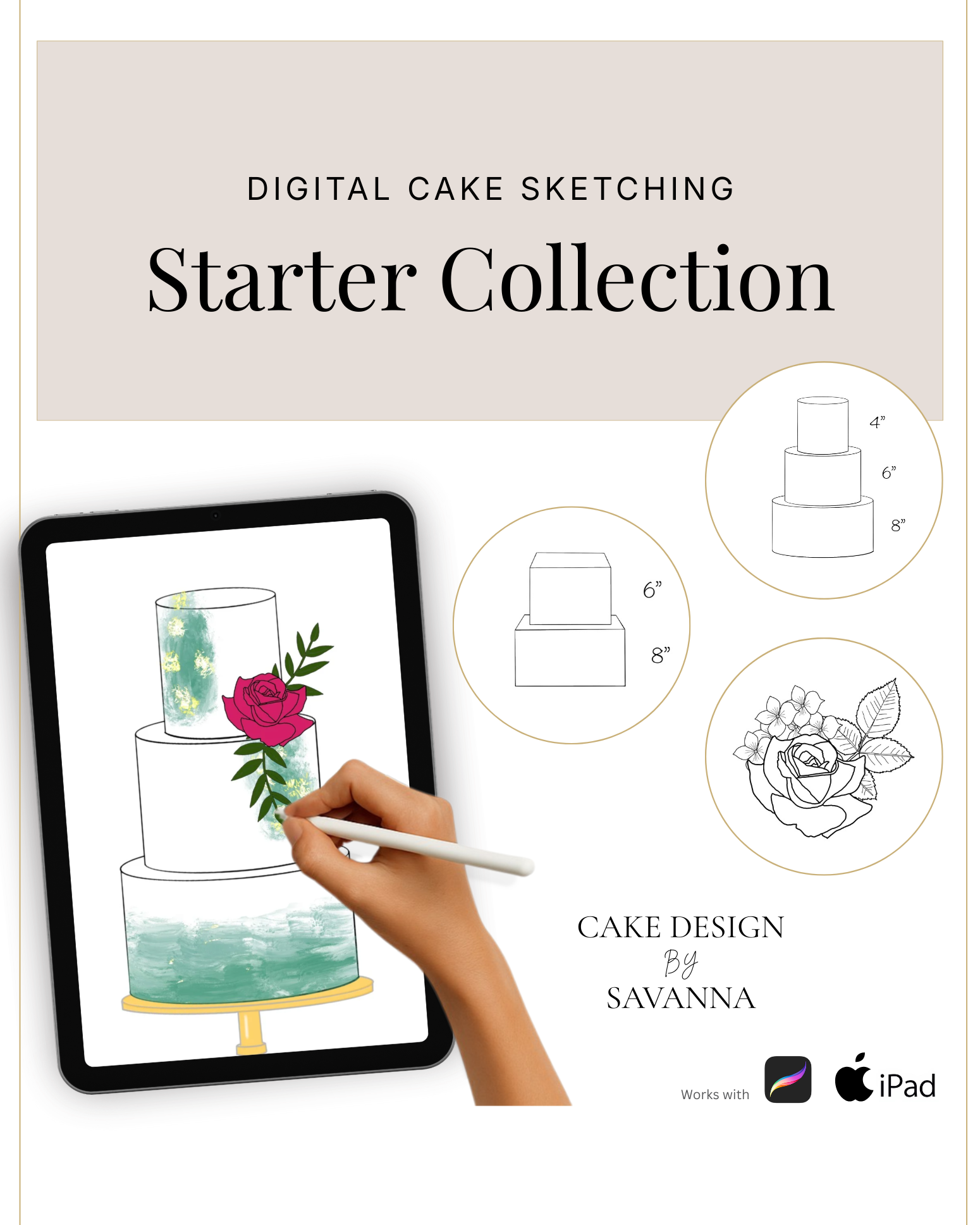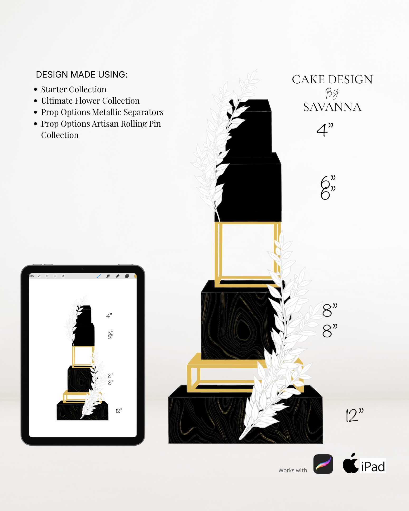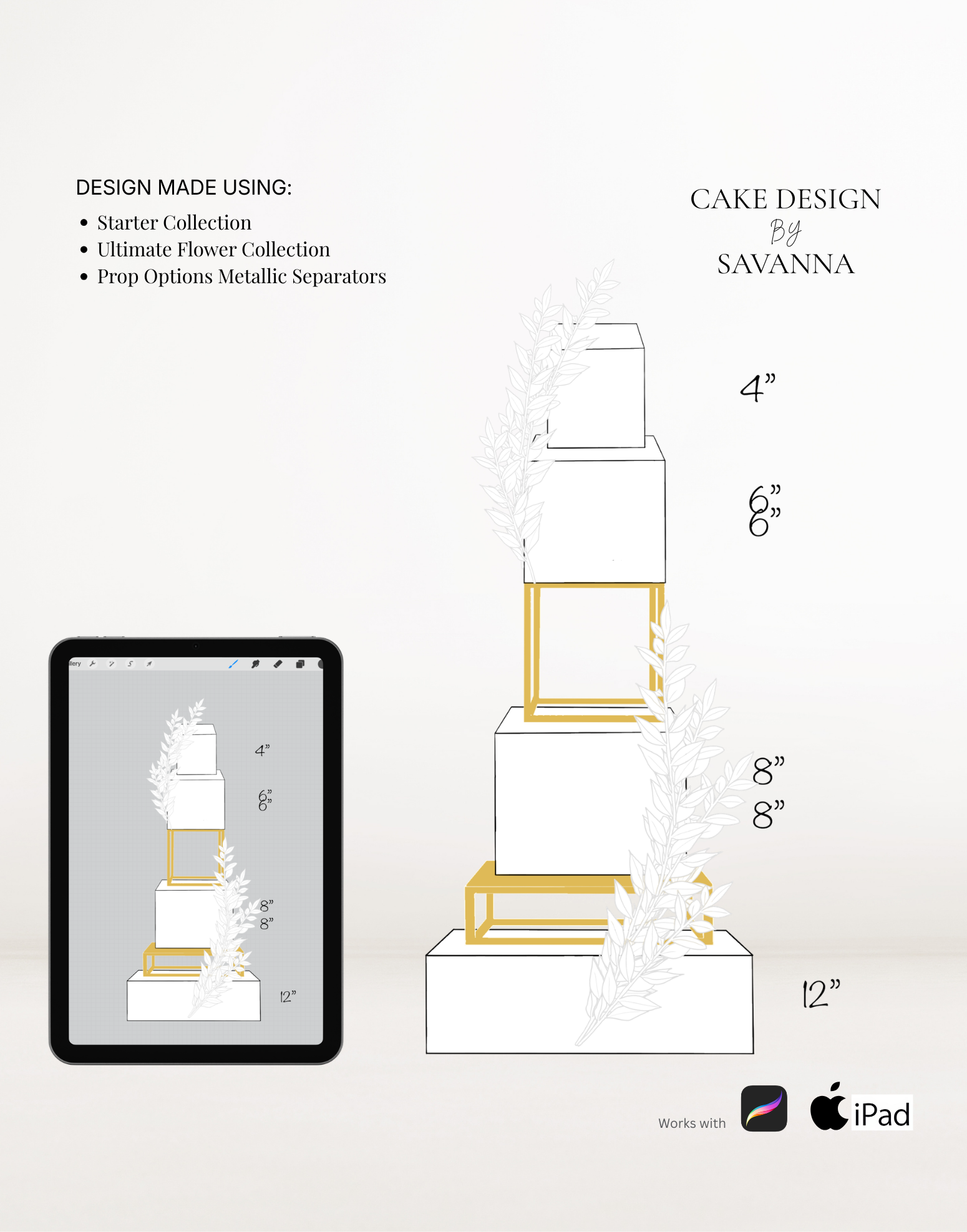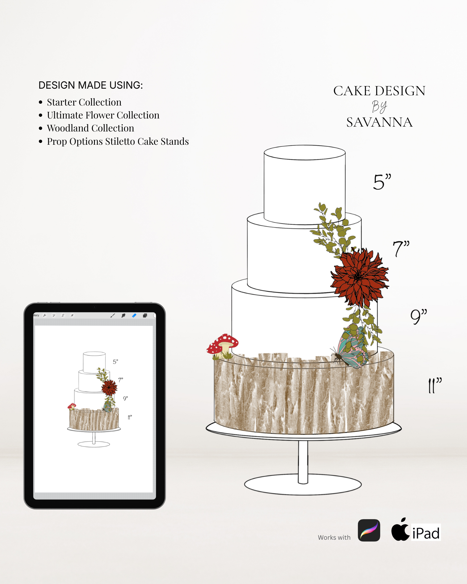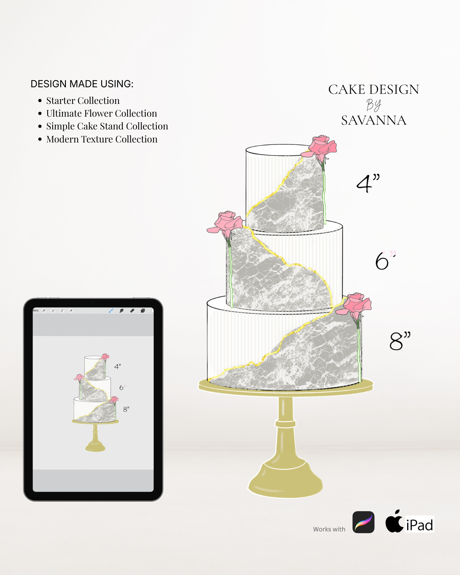 From digital Procreate stamp sets and ready-designed packages to future physical design tools, Cake Design by Savanna exists to remove repetitive work, streamline workflows, and enhance how cake designs are presented to clients.