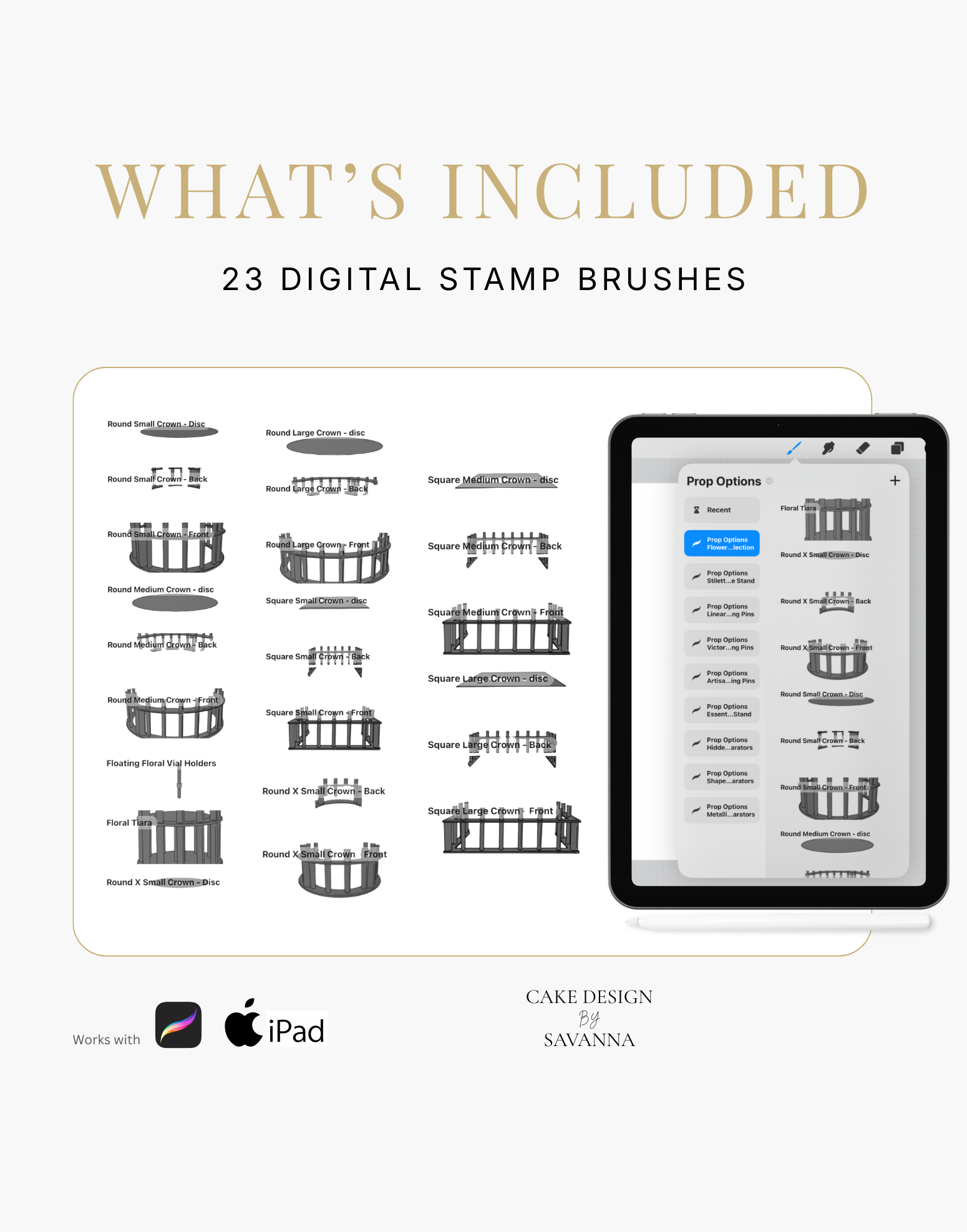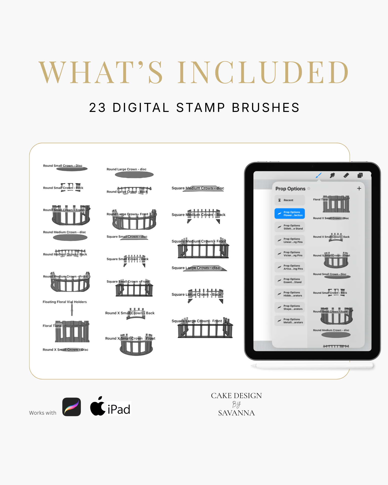 At Prop Options, we believe in supporting the cake industry beyond physical products alone. That's why we're excited to share our official Prop Options digital Product Stamps and Brush sets are available for the first time, giving you an effortless way to sketch, refine, and bring your cake concepts to life. Explore the full collection below.