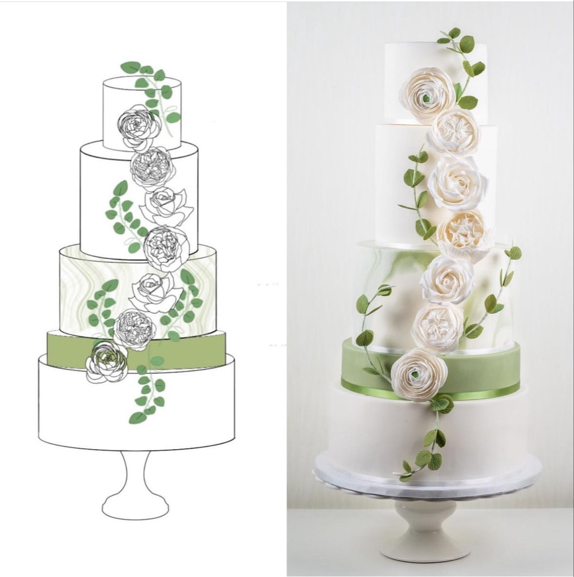 Step-by-step video lessons on how to create a reel showing the sketch to cake reveal