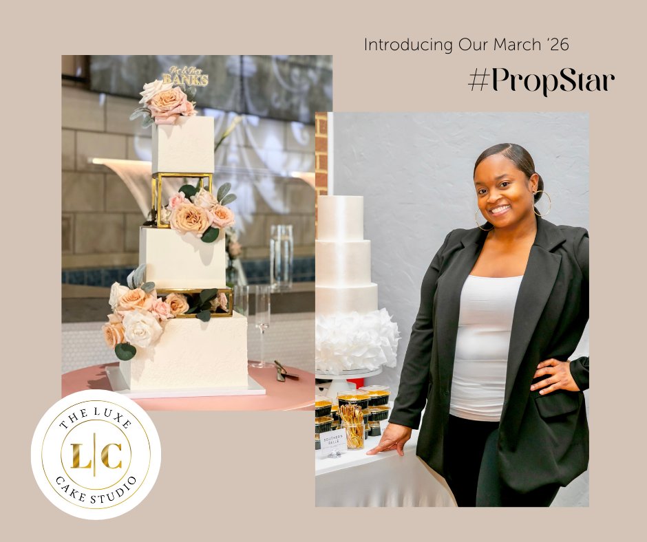 This month’s Prop Star goes to The Luxe Cake Studio, led by luxury cake designer Ashley B. Her work is effortlessly elegant, blending refined detail with a strong, contemporary aesthetic. Each design feels intentional and beautifully composed, where texture, structure and finish come together in perfect balance. We admire her ability to create cakes that feel both soft and powerful, delicate yet commanding. A true expression of modern wedding artistry. We are proud to feature The Luxe Cake Studio as this month’s Prop Star.